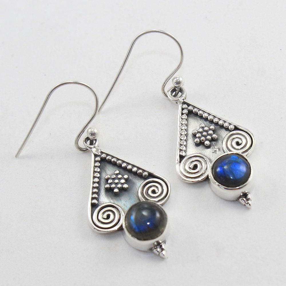 925 SOLID STERLING SILVER NATURAL LABRADORITE GEMSTONE HOOK EARRING