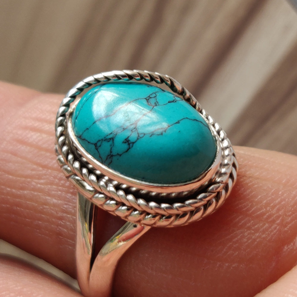 925 SOLID STERLING SILVER NATURAL TURQUOISE GEMSTONES HANDMADE RING, ALL SIZES AVAILABLE