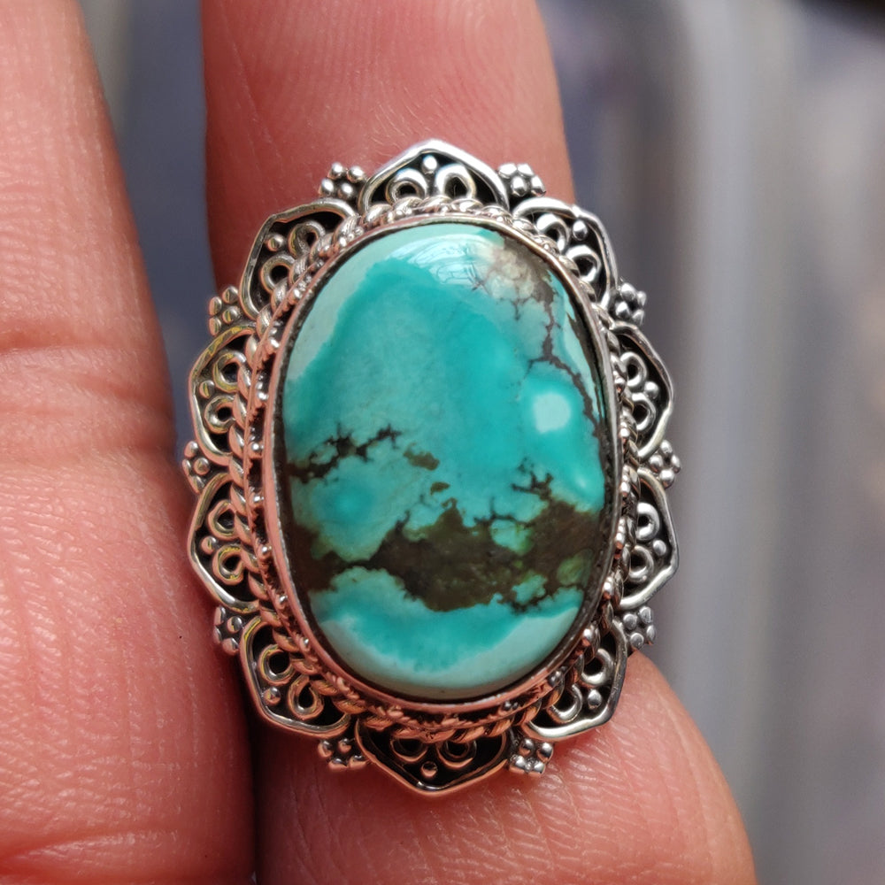 925 SOLID STERLING SILVER NATURAL TURQUOISE GEMSTONES HANDMADE RING, ALL SIZES AVAILABLE