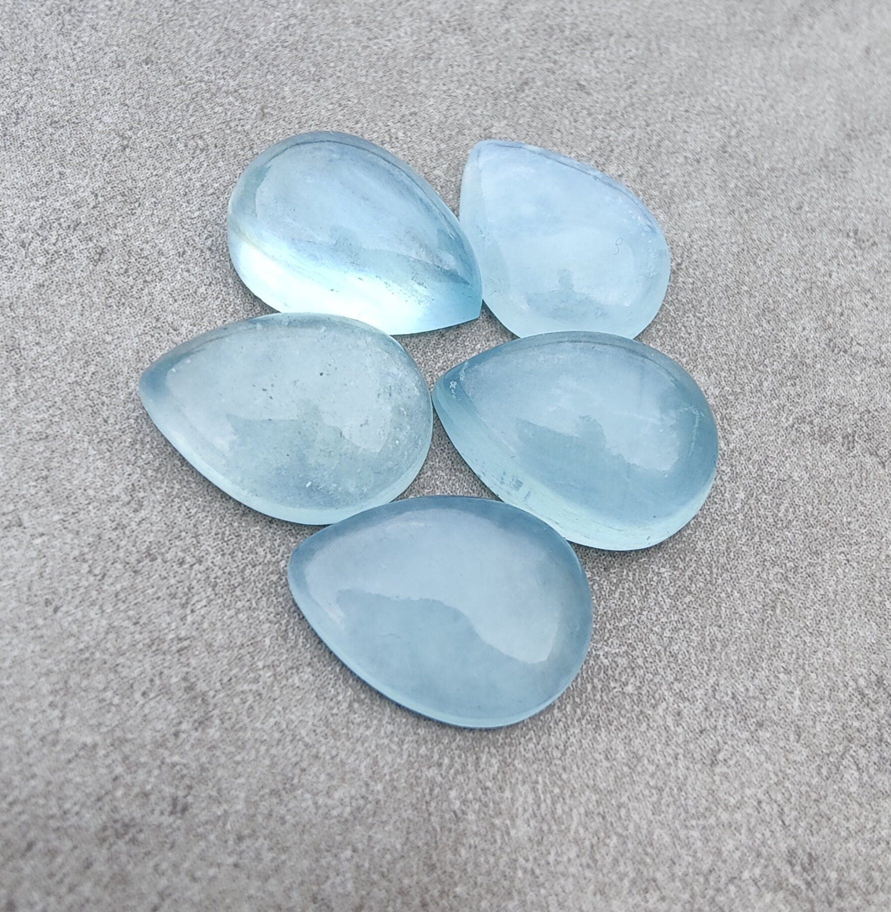 AAA+ Quality Natural Aqua Milky Teardrop Shape Cabochon Flat Back Calibrated Pear Shape Wholesale Gemstones, All Sizes Available