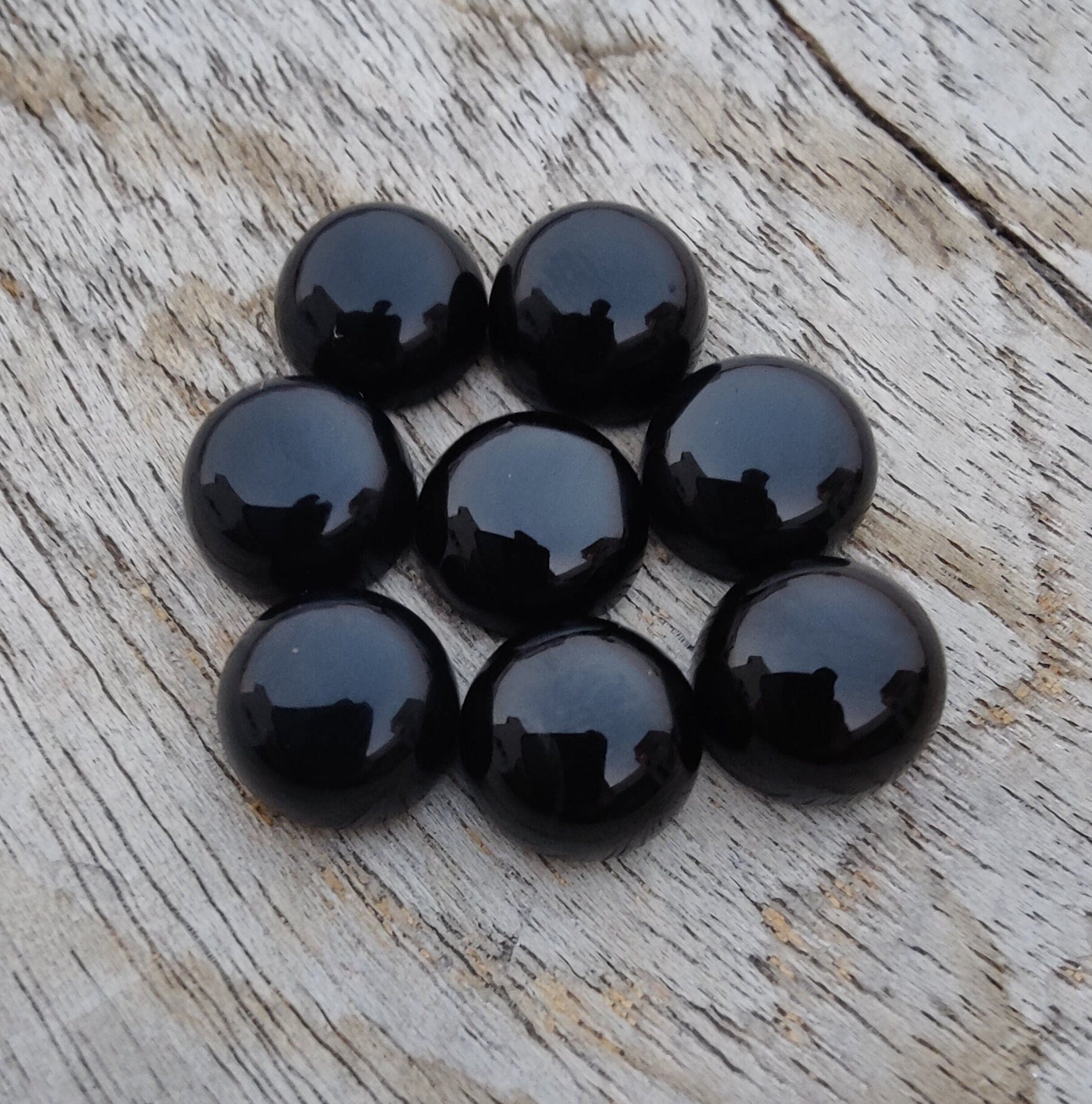 AAA+ Quality Natural Black Onyx Round Shape Cabochon Flat Back Calibrated Wholesale Gemstones, All Sizes Available