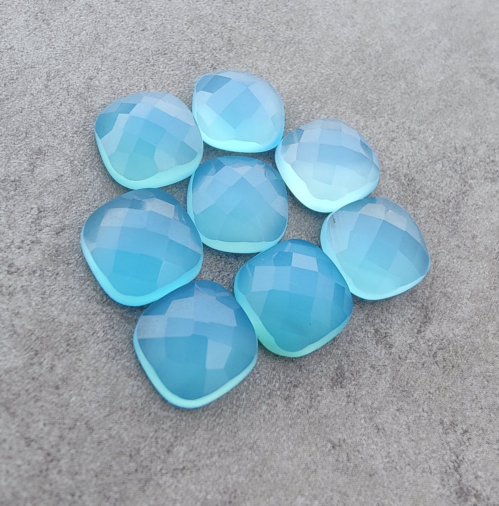 AAA+ Quality Natural Blue Chalcedony Square Cushion Shape Checker Cut Flat Back Calibrated Wholesale Gemstones, All Sizes Available