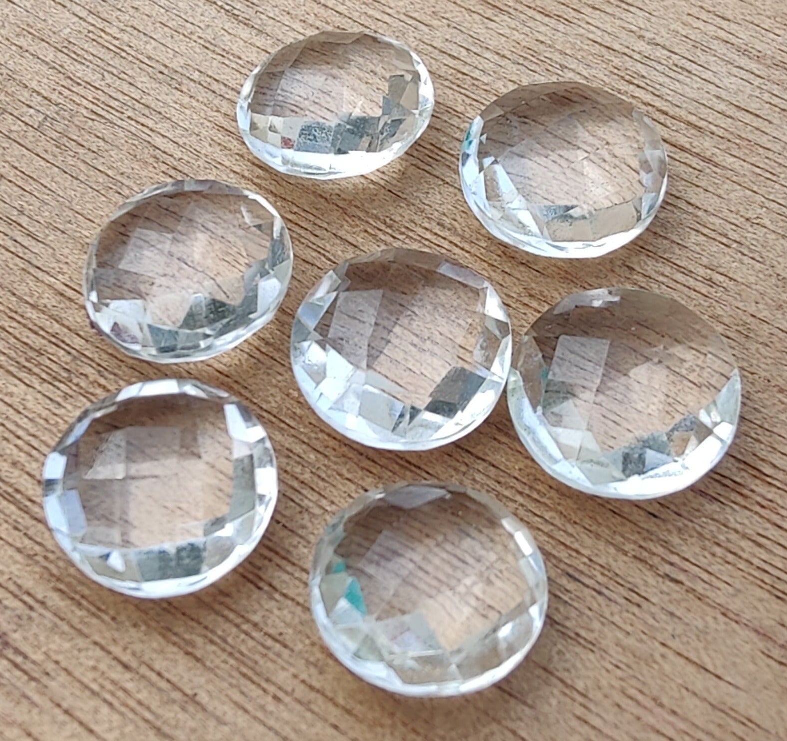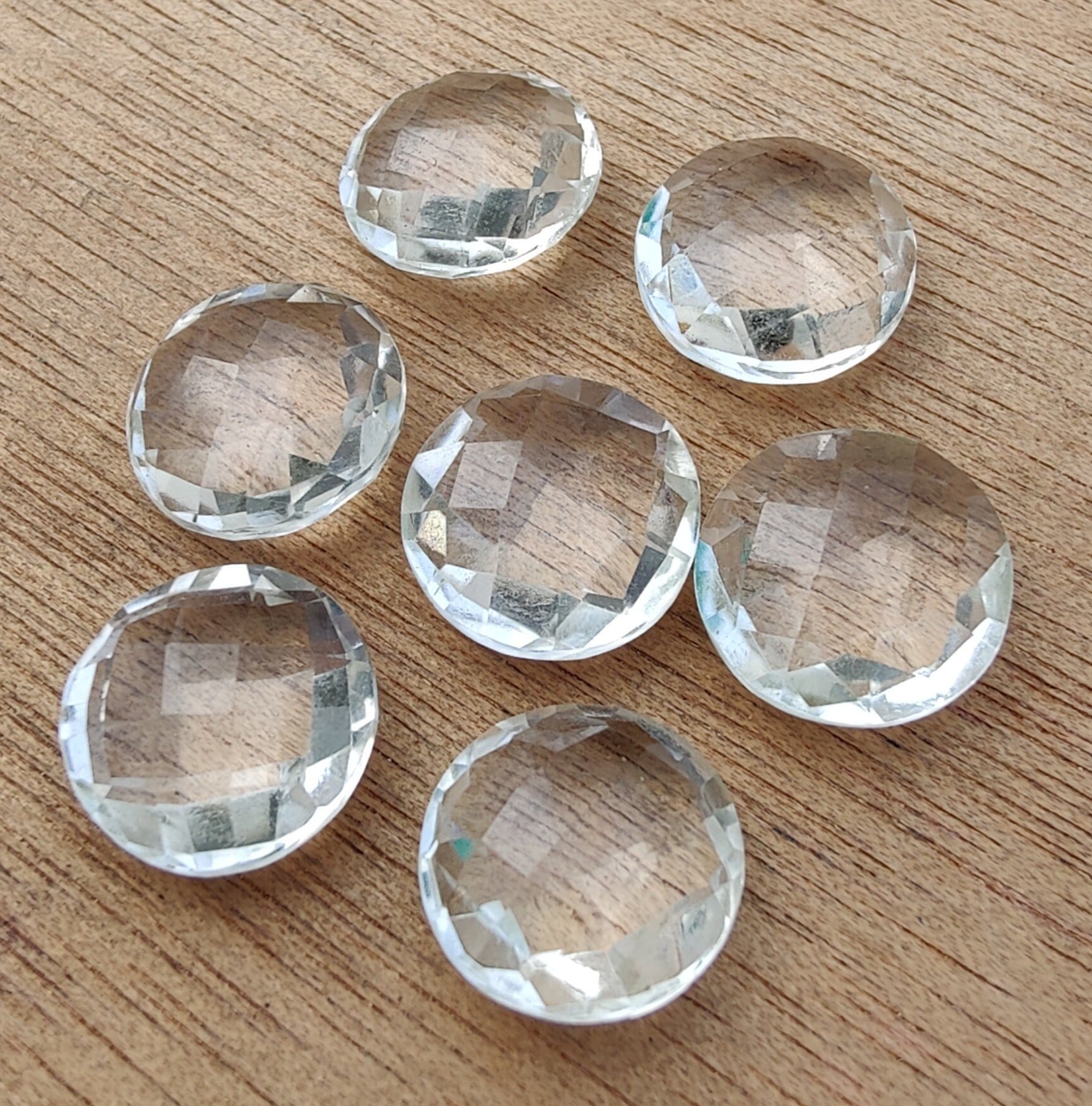 AAA+ QUALITY NATURAL CRYSTAL QUARTZ ROUND SHAPE BRIOLETTE CUT FLAT BACK CALIBRATED ROUND SHAPE GEMSTONES, ALL SIZES AVAILABLE