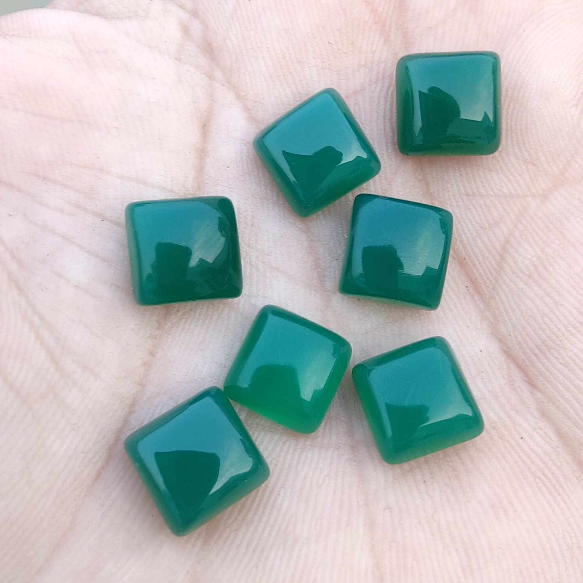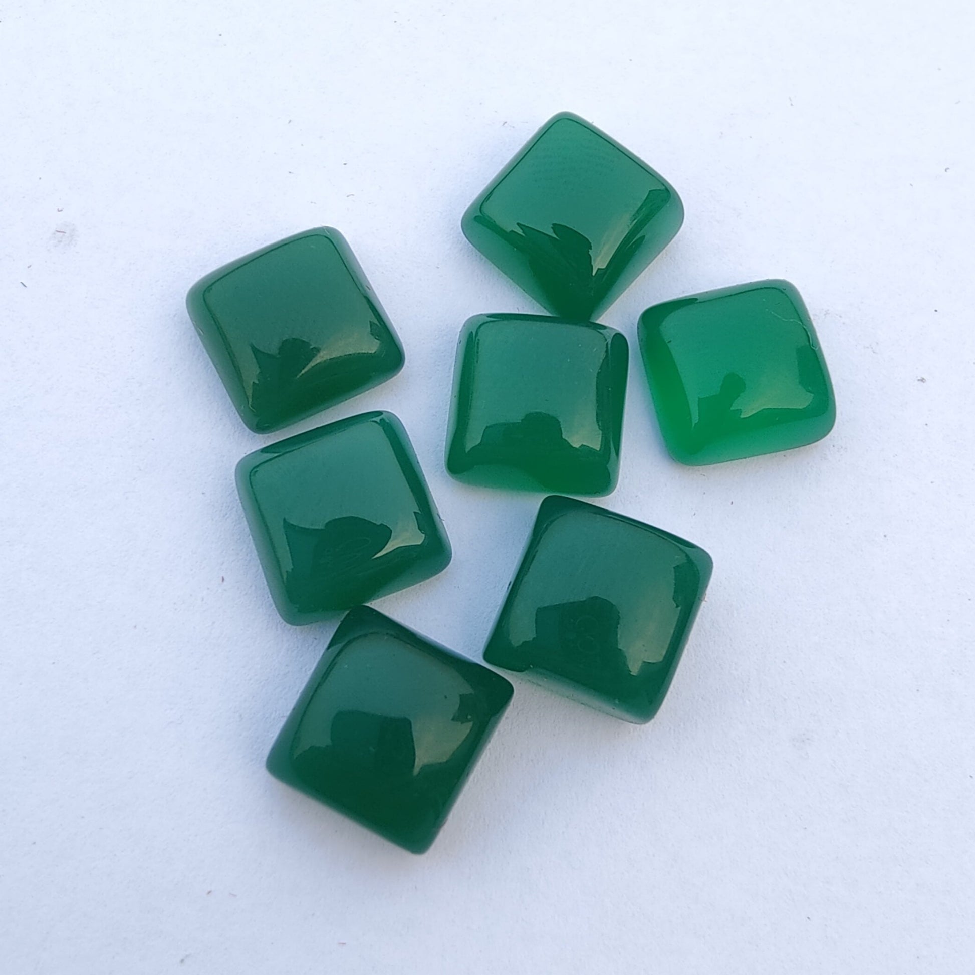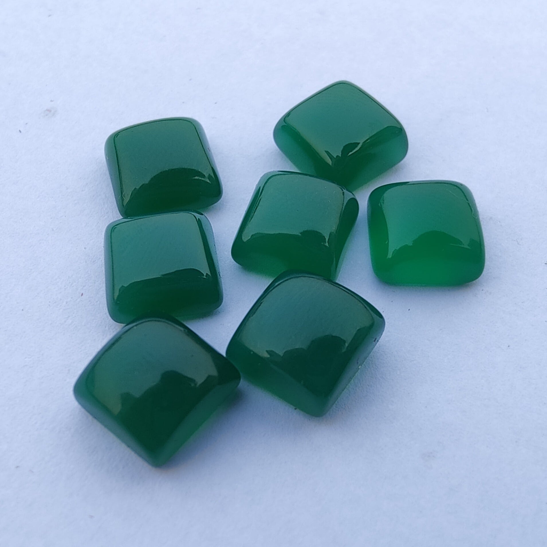 AAA+ QUALITY NATURAL GREEN ONYX SQUARE SHAPE CABOCHOM FLAT BACK CALIBRATED GEMSTONES, ALL SIZES AVAILABLE