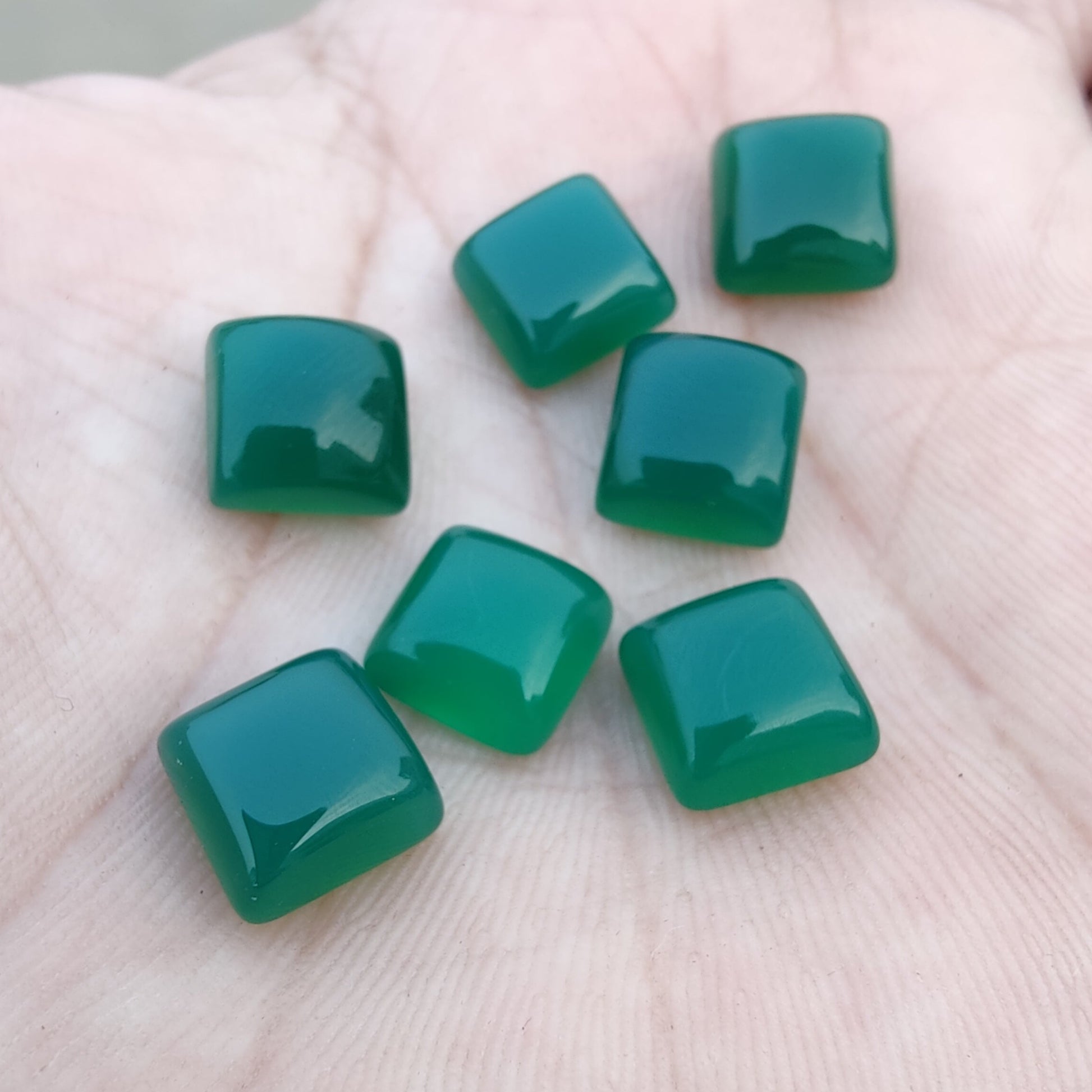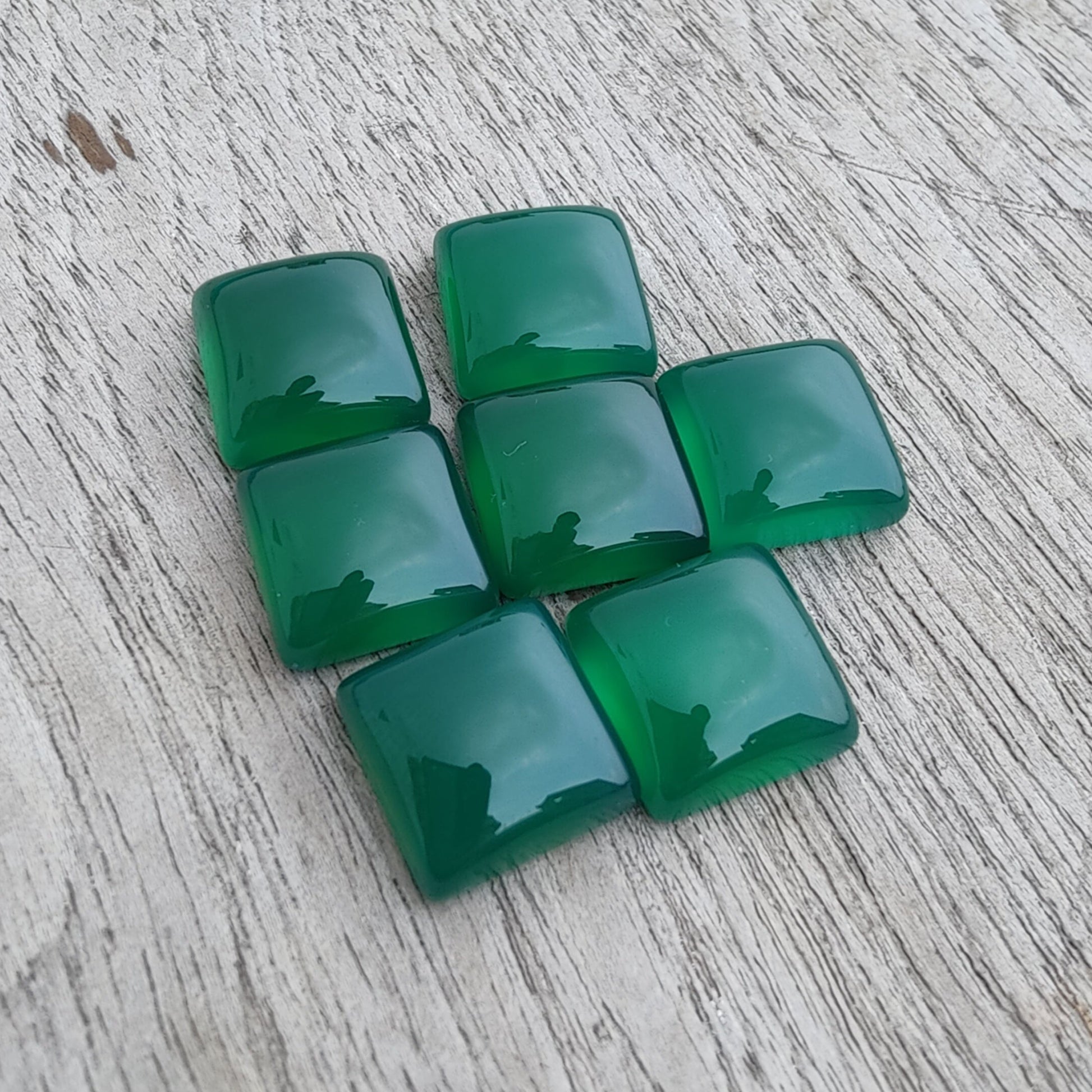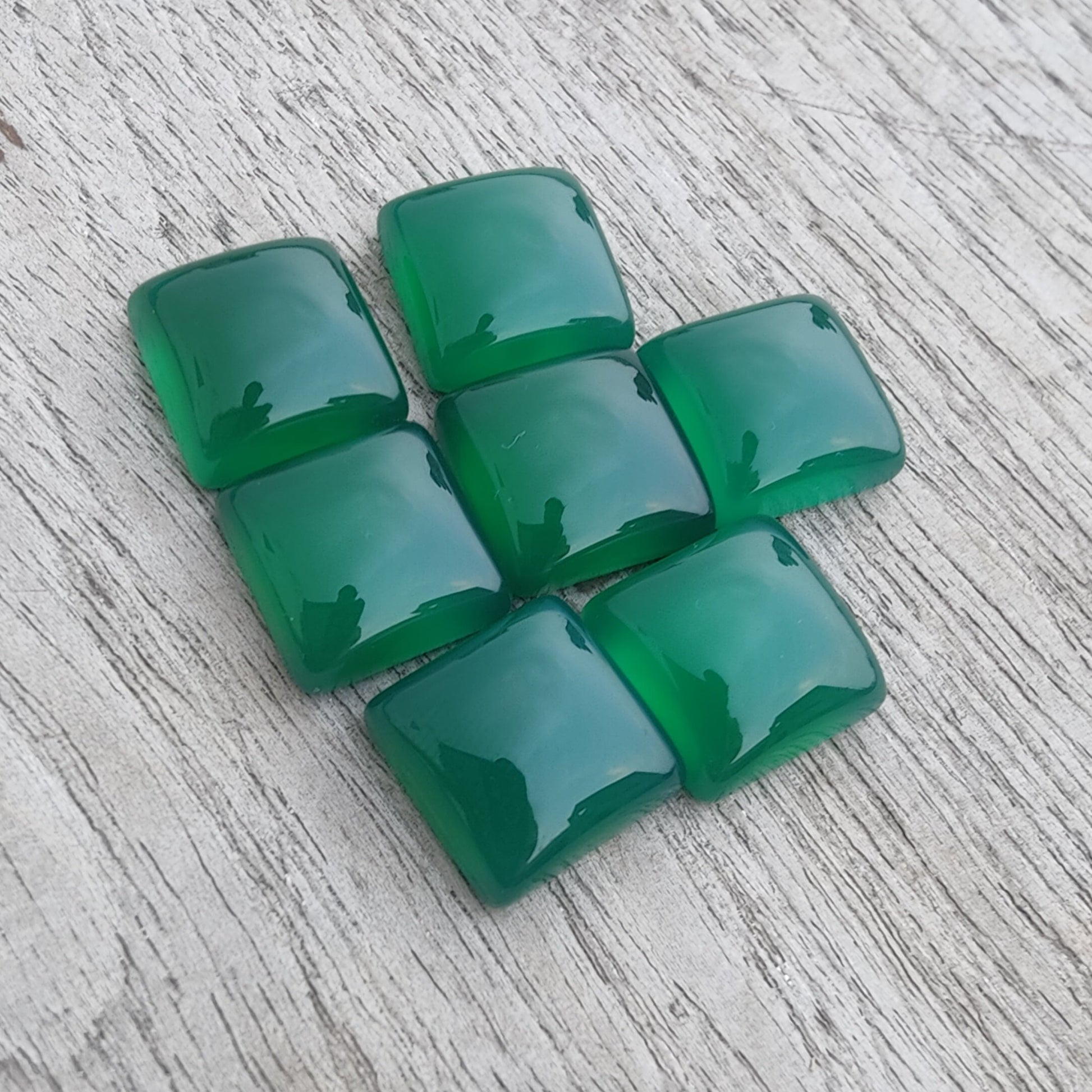 AAA+ QUALITY NATURAL GREEN ONYX SQUARE SHAPE CABOCHOM FLAT BACK CALIBRATED GEMSTONES, ALL SIZES AVAILABLE