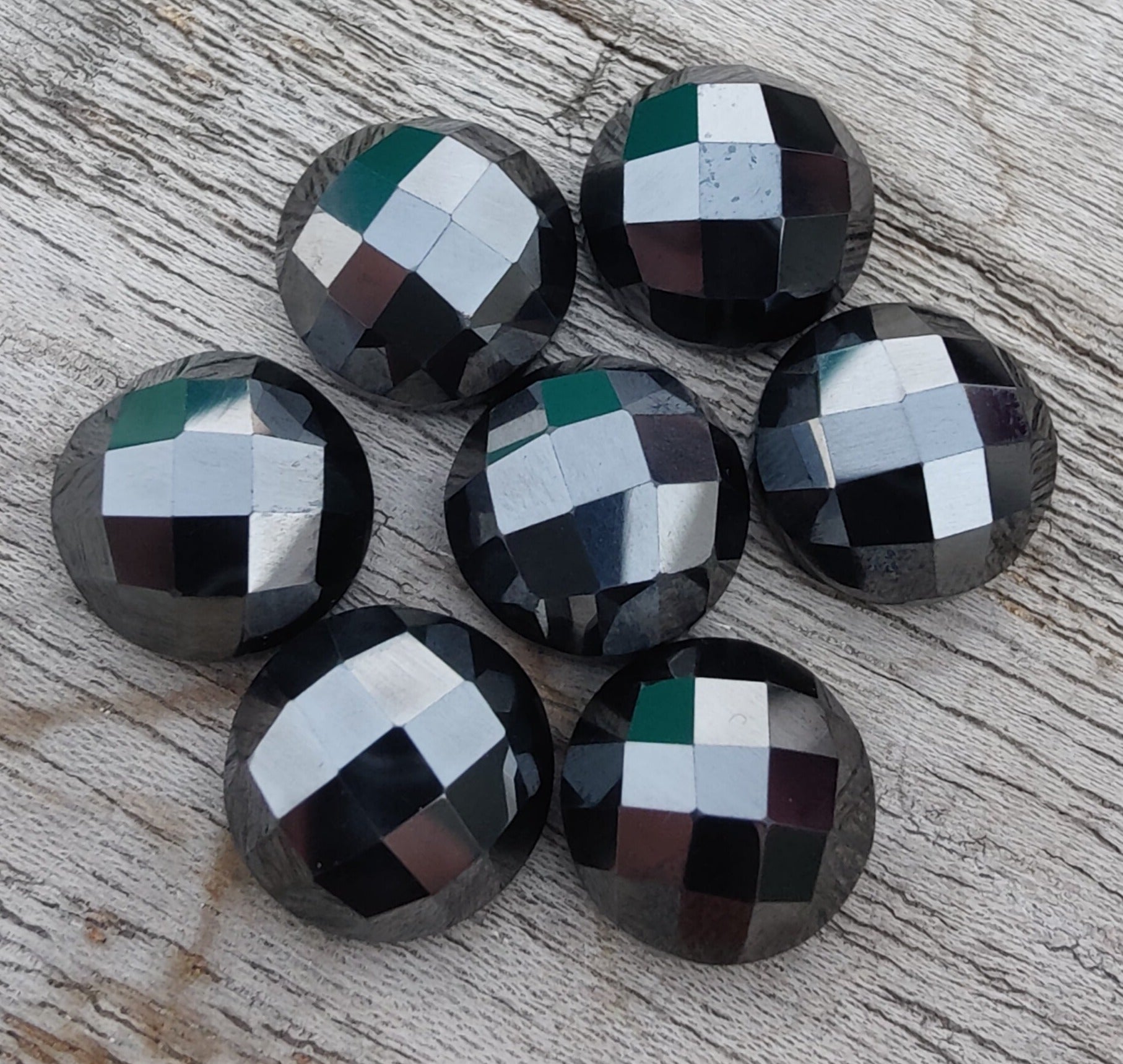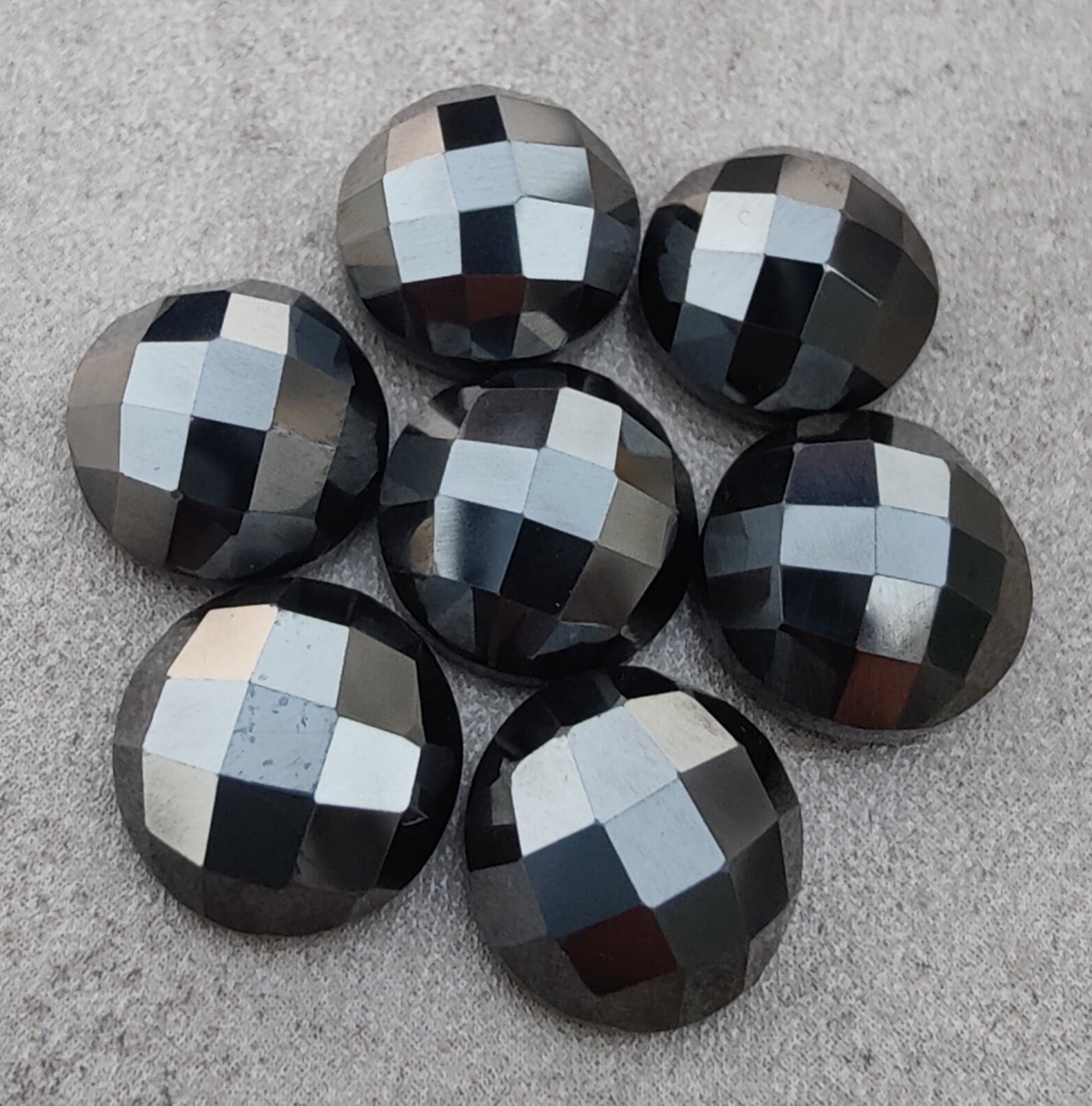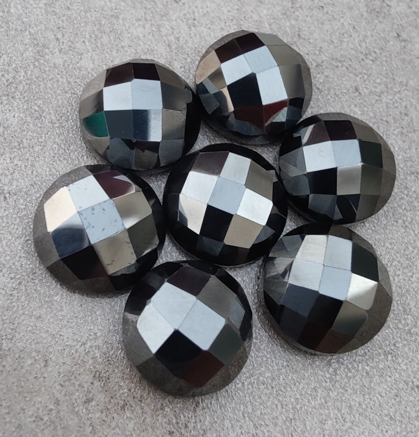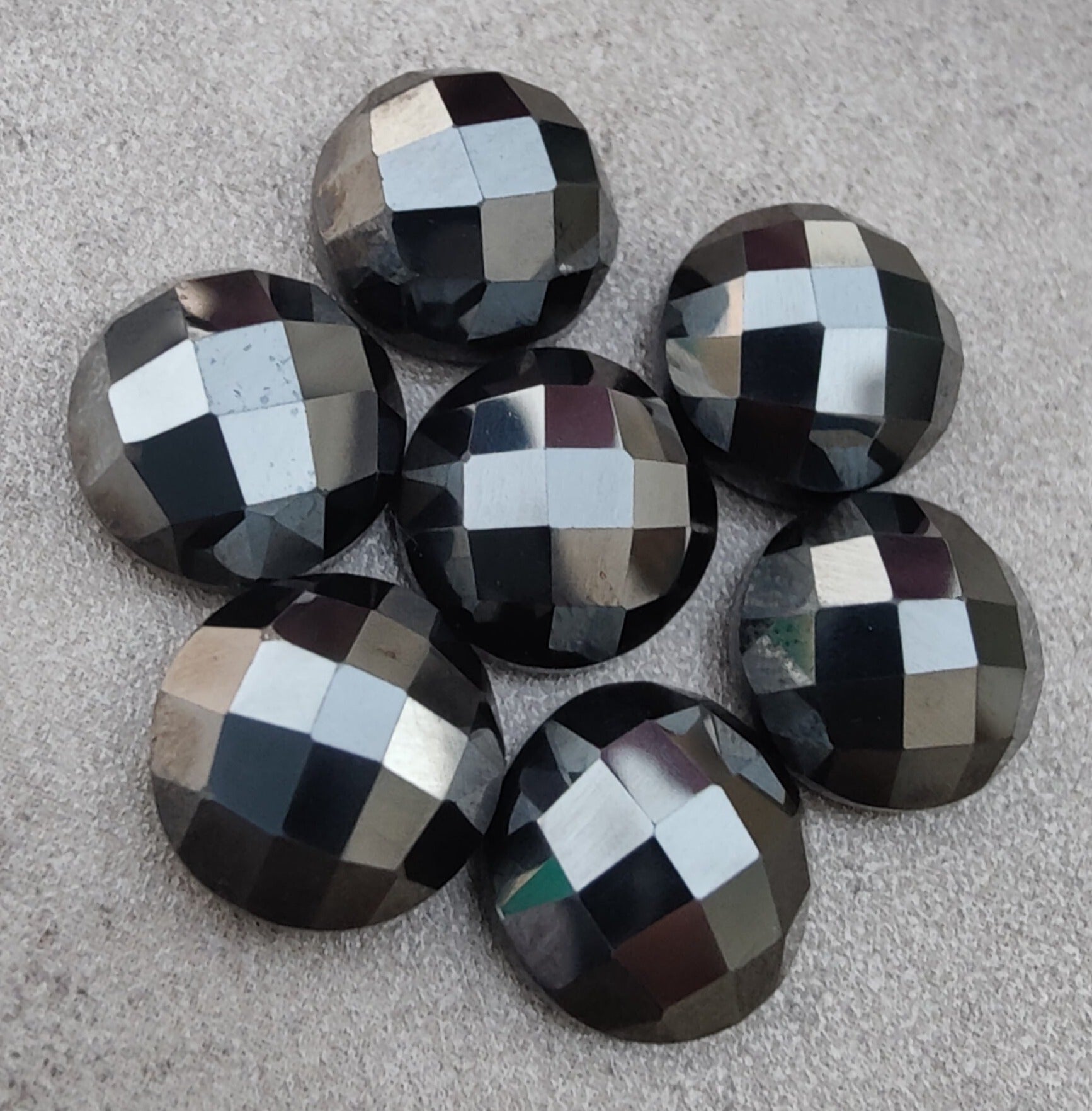 AAA+ QUALITY NATURAL HEMATITE ROUND SHAPE CHECKER CUT FLAT BACK CALIBRATED GEMSTONES, ALL SIZES AVAILABLE