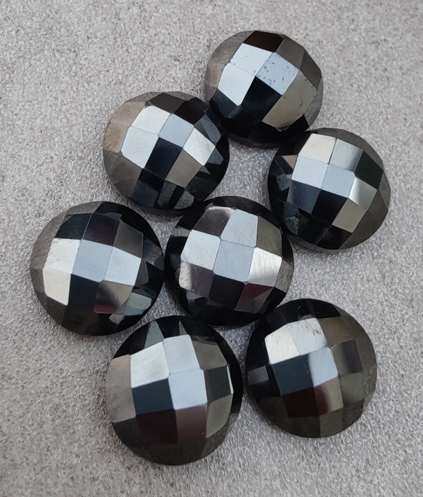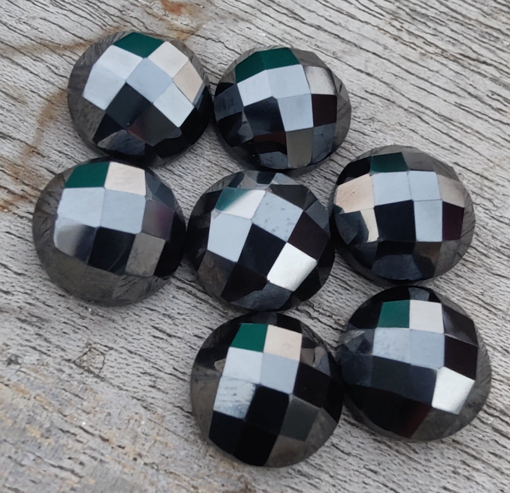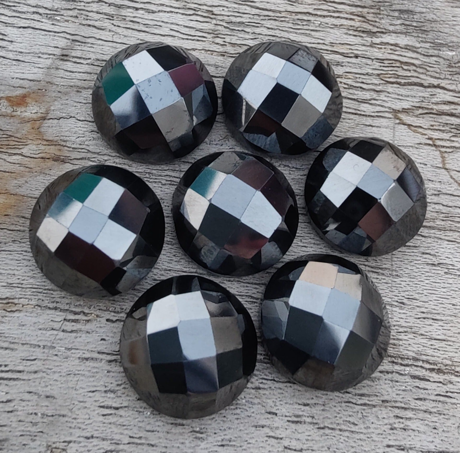AAA+ QUALITY NATURAL HEMATITE ROUND SHAPE CHECKER CUT FLAT BACK CALIBRATED GEMSTONES, ALL SIZES AVAILABLE