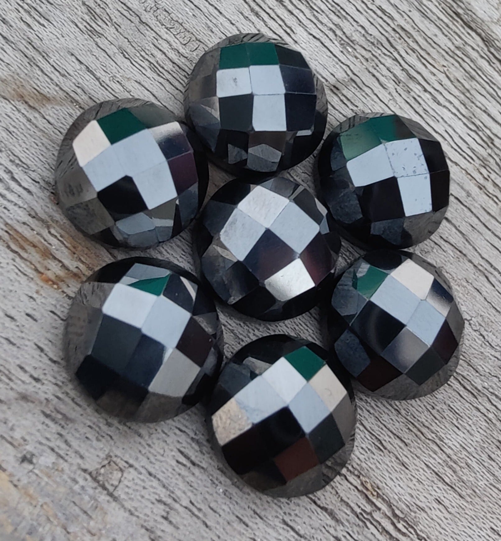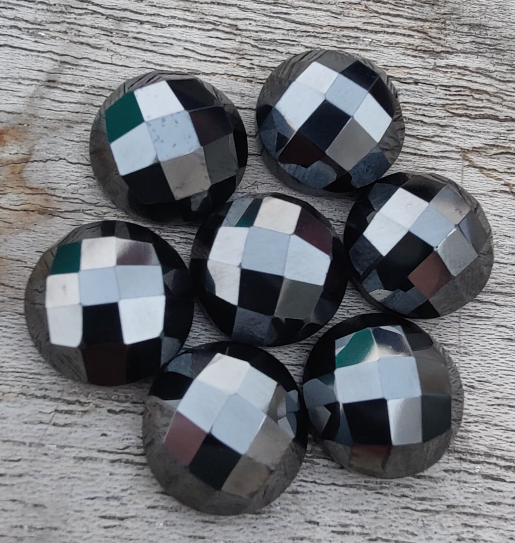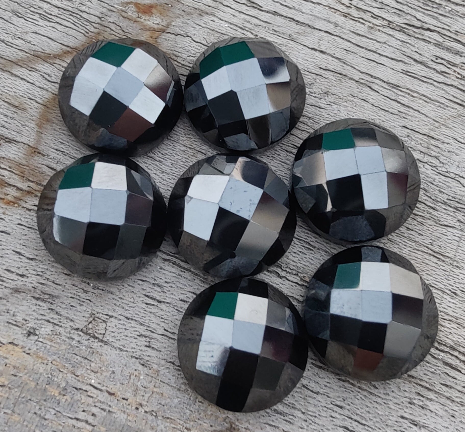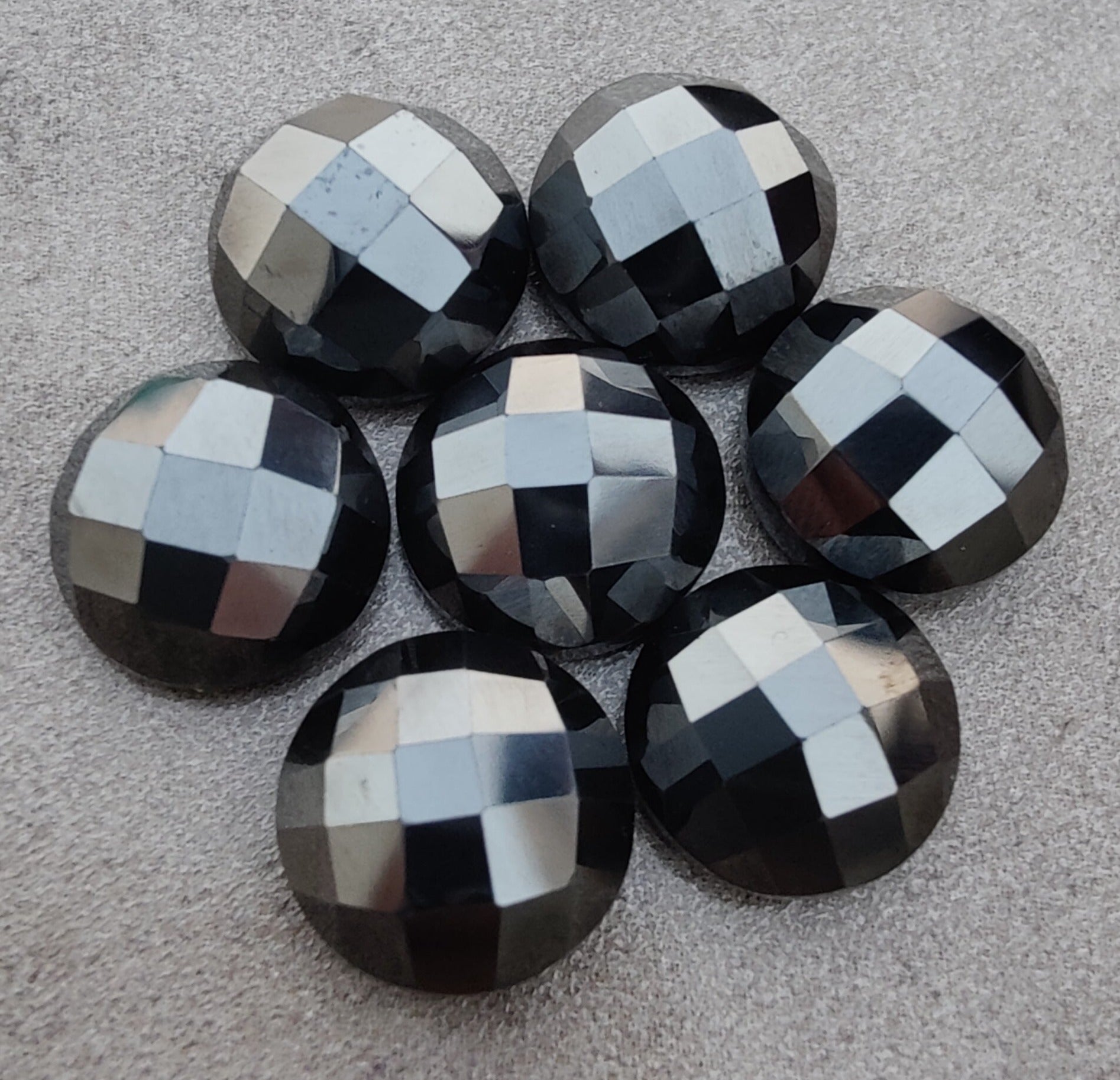 AAA+ QUALITY NATURAL HEMATITE ROUND SHAPE CHECKER CUT FLAT BACK CALIBRATED GEMSTONES, ALL SIZES AVAILABLE