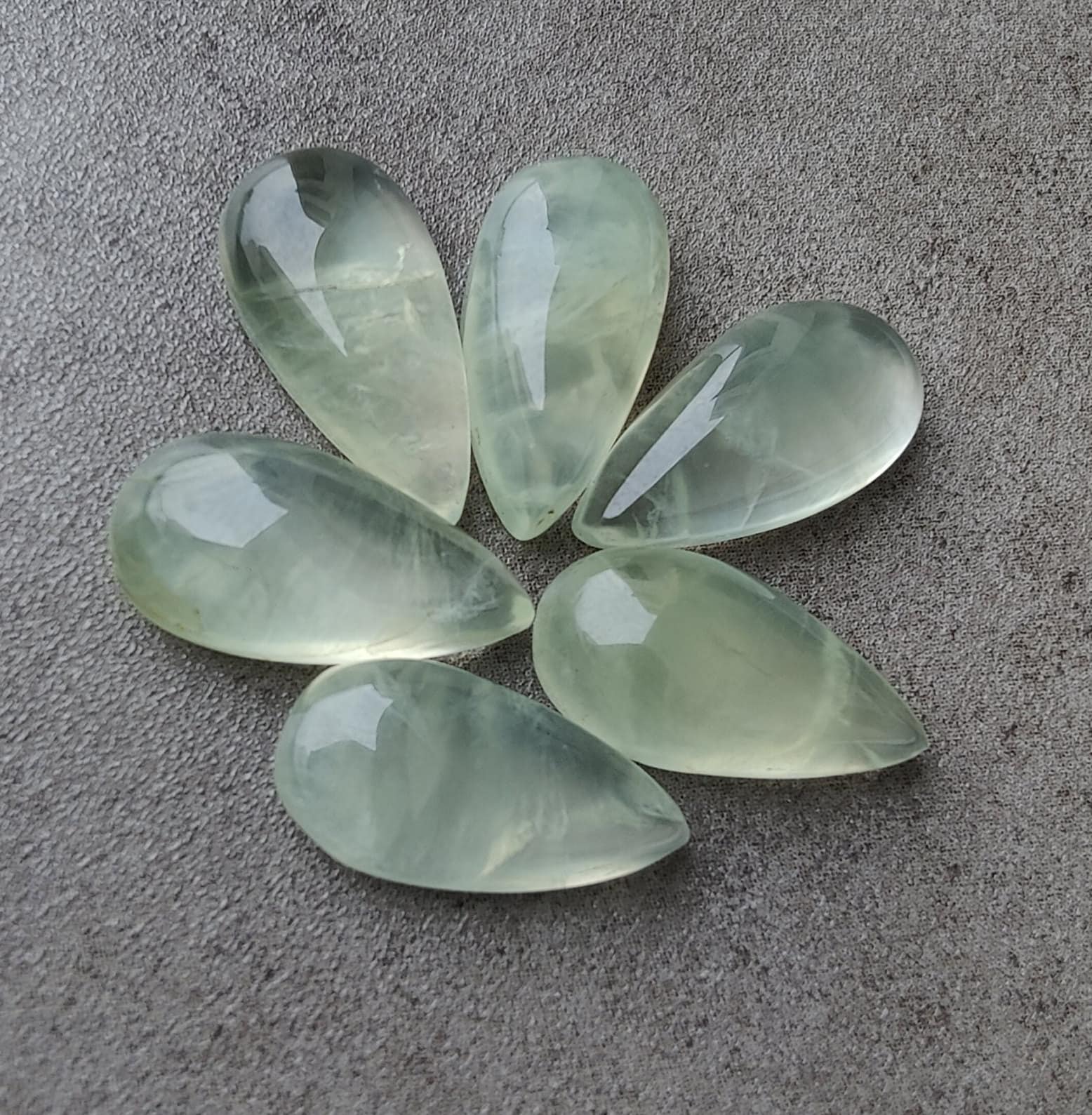AAA+ Quality Natural Prehnite Big Pear Shape Cabochon Flat Back Calibrated Teardrop Shape Gemstones, All Sizes Available