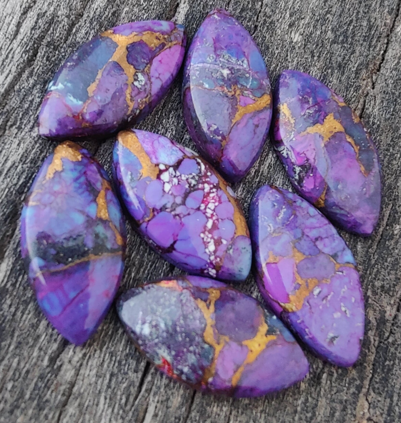 AAA+ Quality Natural Purple Copper Turquoise Marquise Shape Cabochon Flat Back Calibrated Loose Gemstones, All Sizes Available