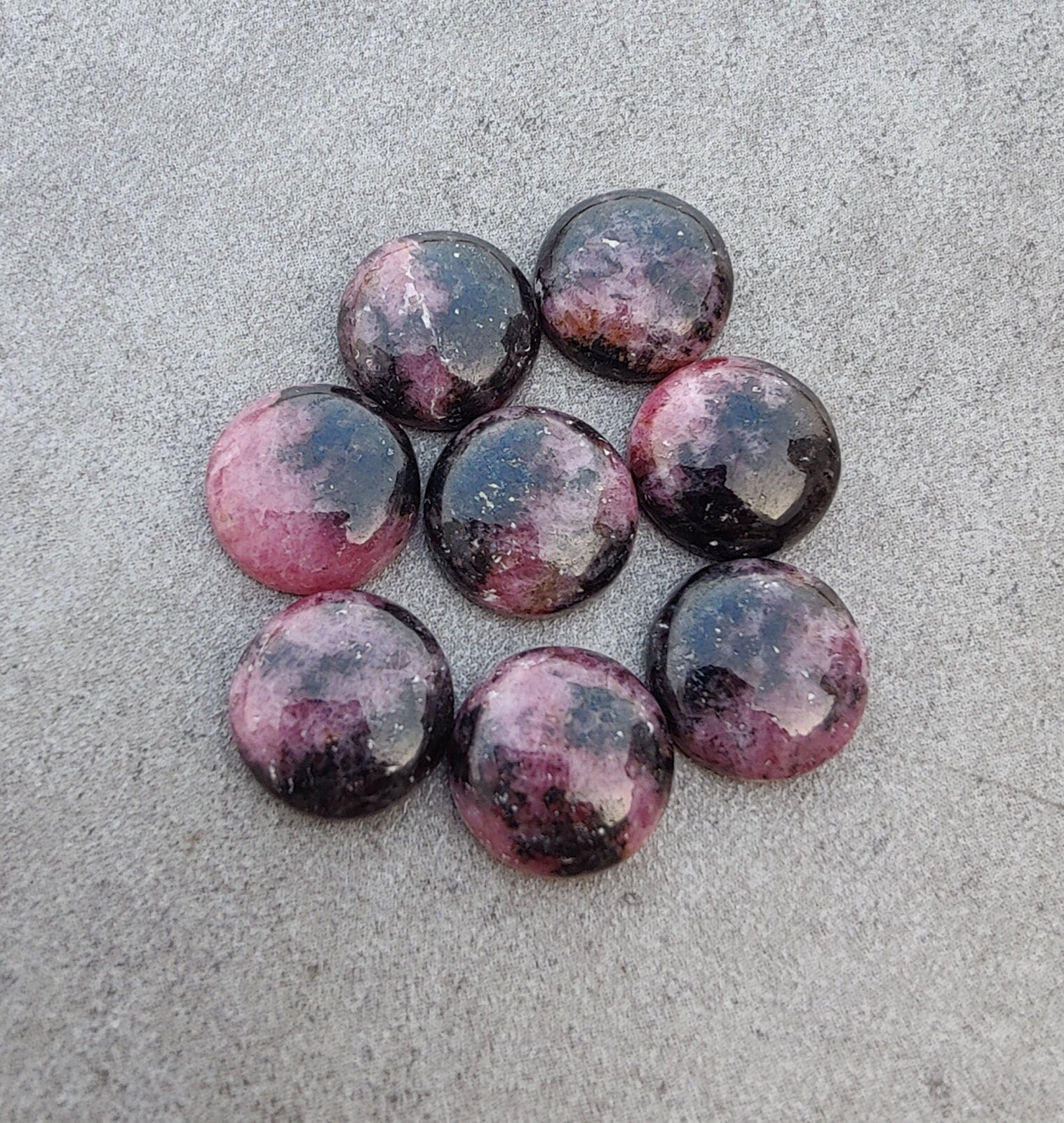 AAA+ Quality Natural Rhodonite Round Shape Cabochon Flat Back Calibrated Wholesale Gemstones, All Sizes Available