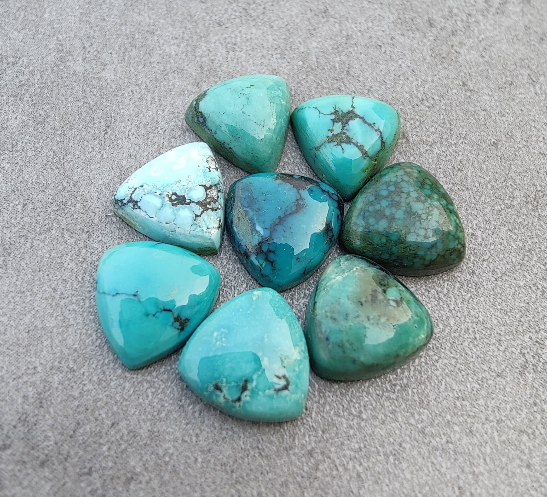 AAA+ Quality Natural Tibetan Turquoise Trillion Shape Cabochon Flat Back Calibrated Wholesale Gemstones, All Sizes Available