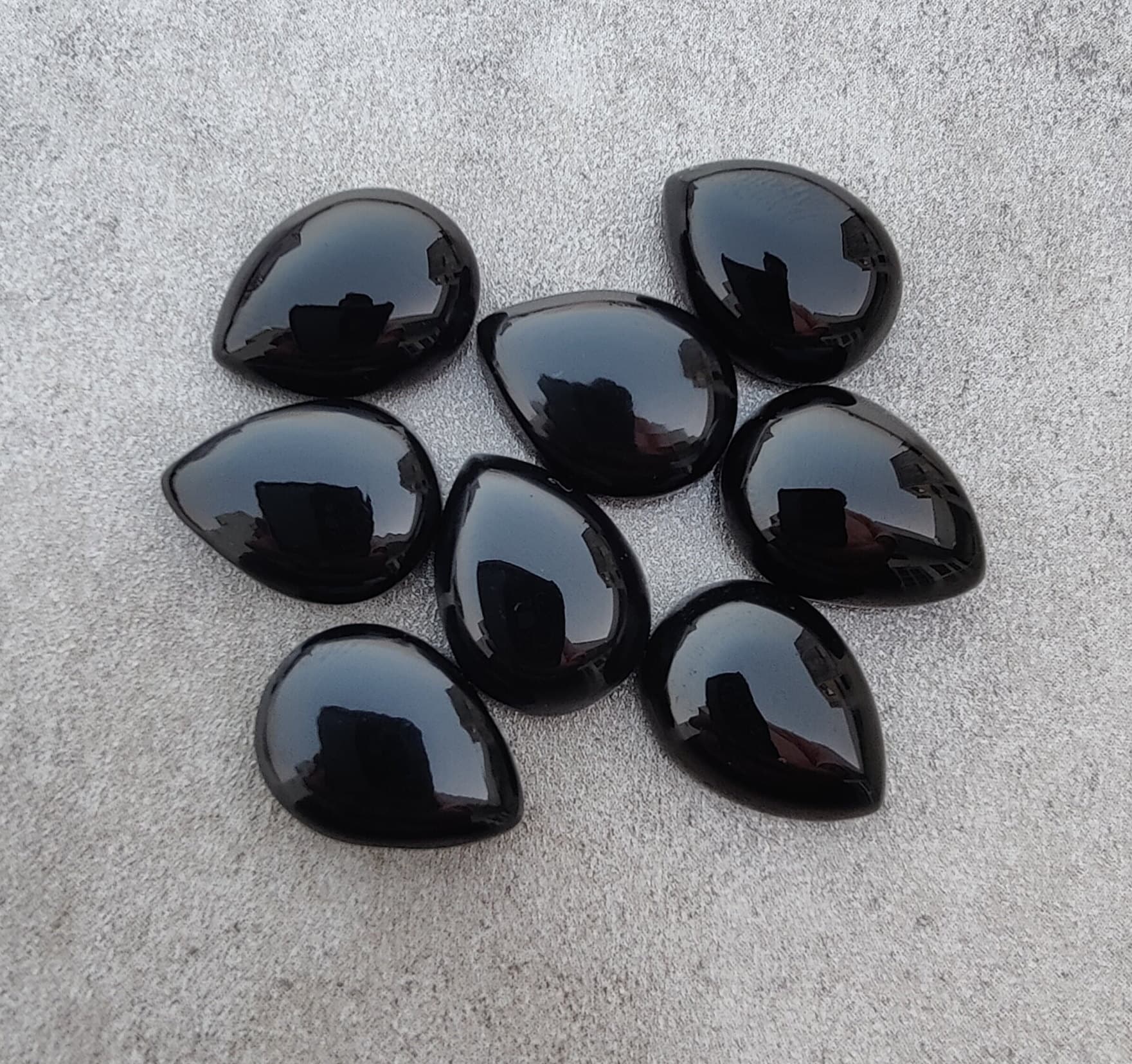 Natural Black Onyx Pear Shape Cabochon Flat Back AAA+ Quality Calibrated Teardrop Shape Wholesale Gemstones, All Sizes Available