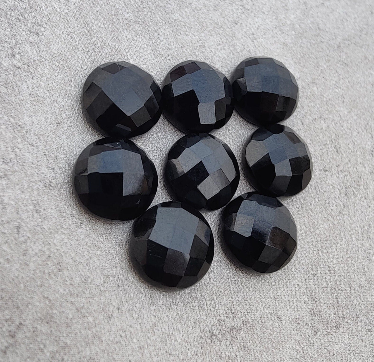 Natural Black Onyx Round Shape Checker Cut Flat Back Calibrated AAA+ Quality Wholesale Gemstones, All Sizes Available