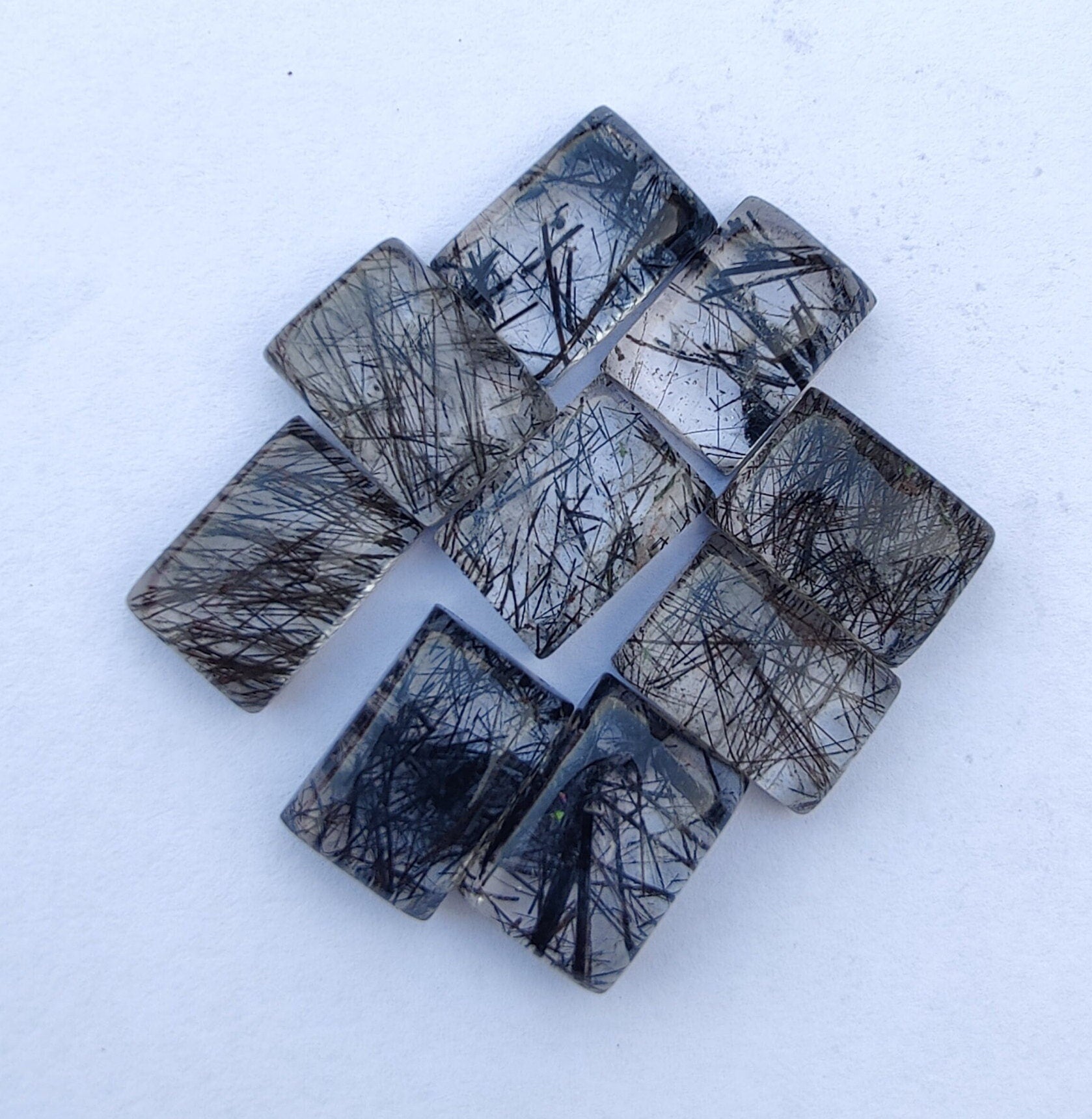 Natural Black Rutile Rectangle Shape Cabochon Flat Back AAA+ Quality Calibrated Wholesale Gemstones, Custom Sizes Available