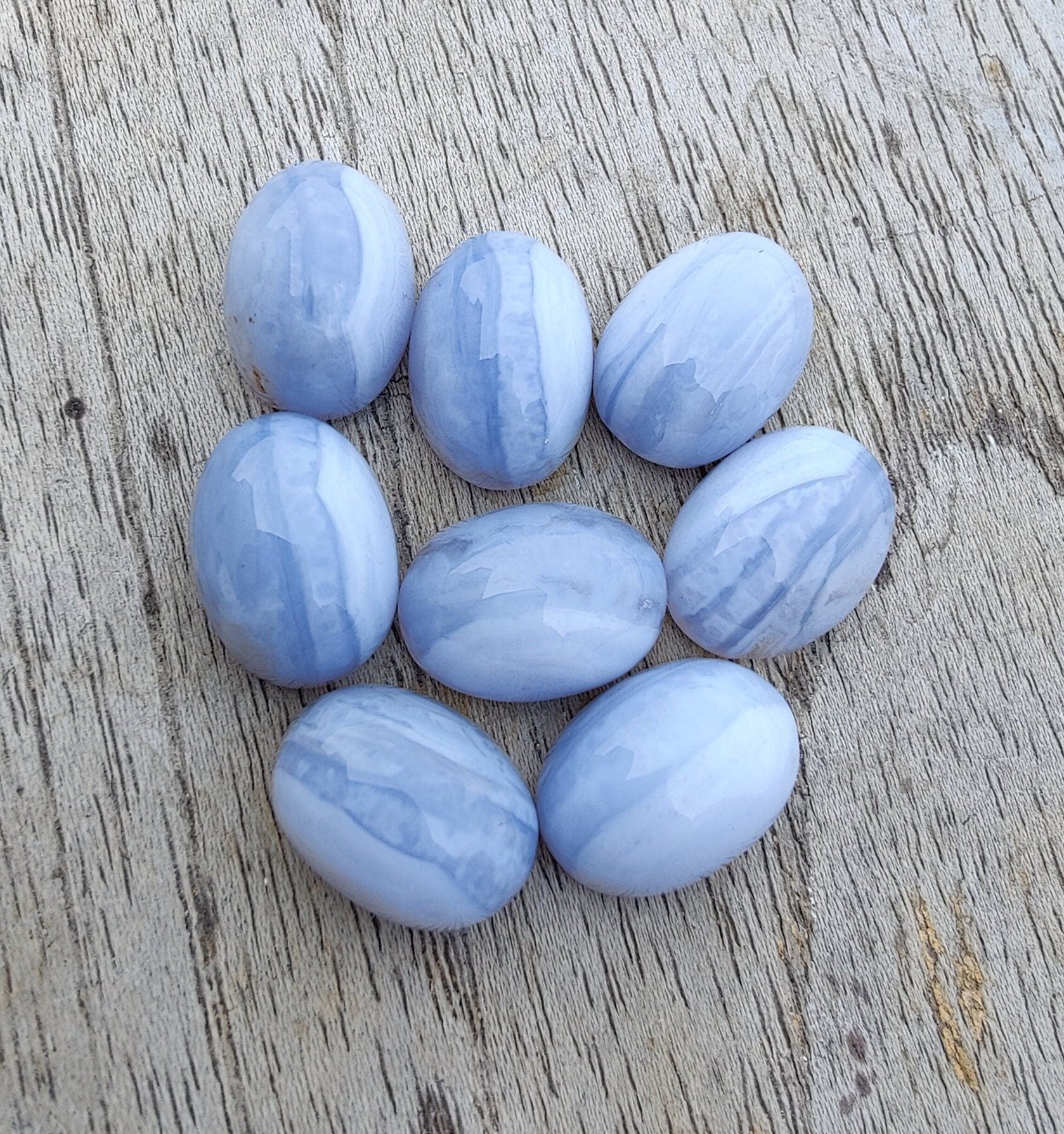 Natural Blue Lace Agate Oval Shape Cabochon Flat Back AAA+ Quality Calibrated Wholesale Gemstones, All Sizes Available