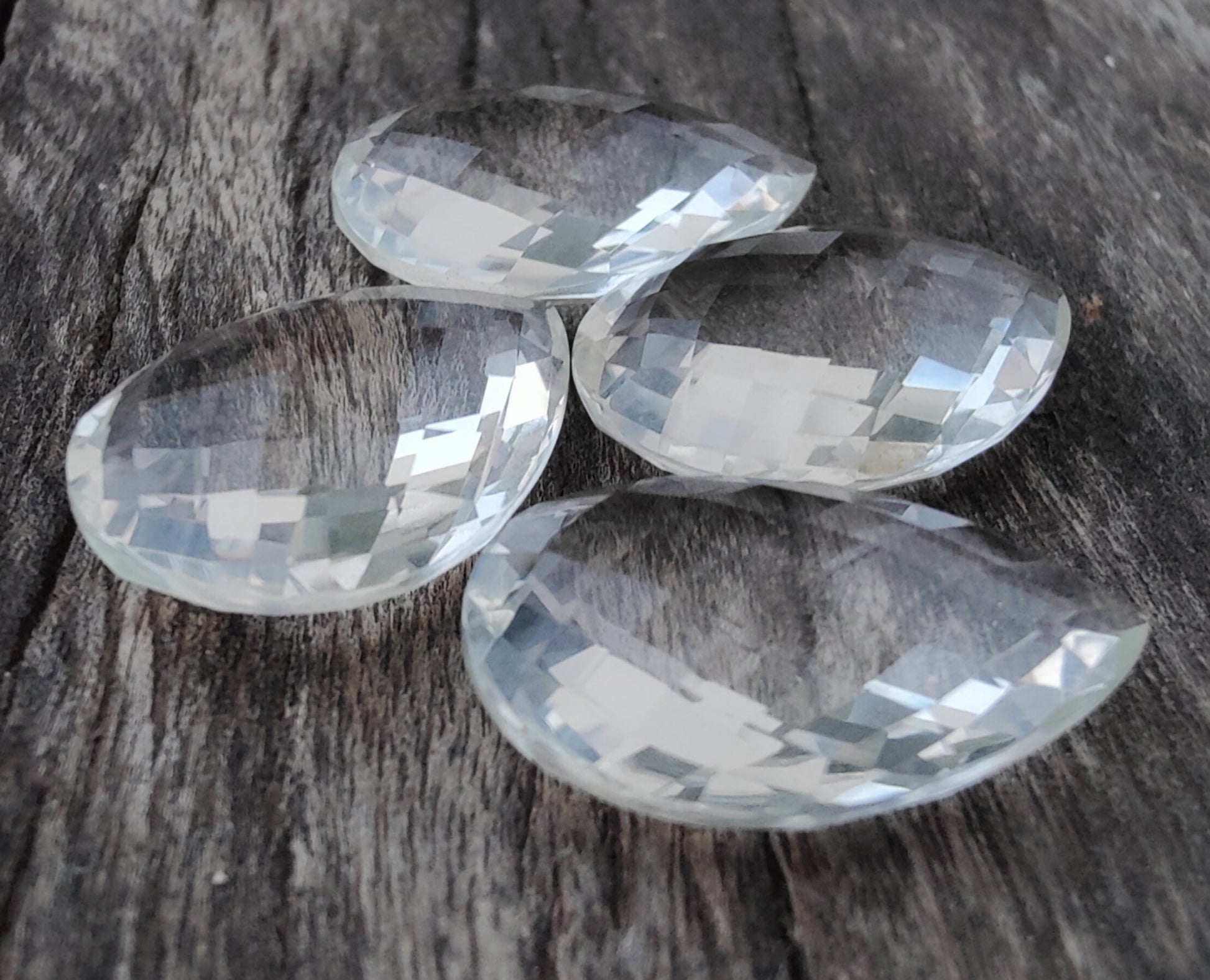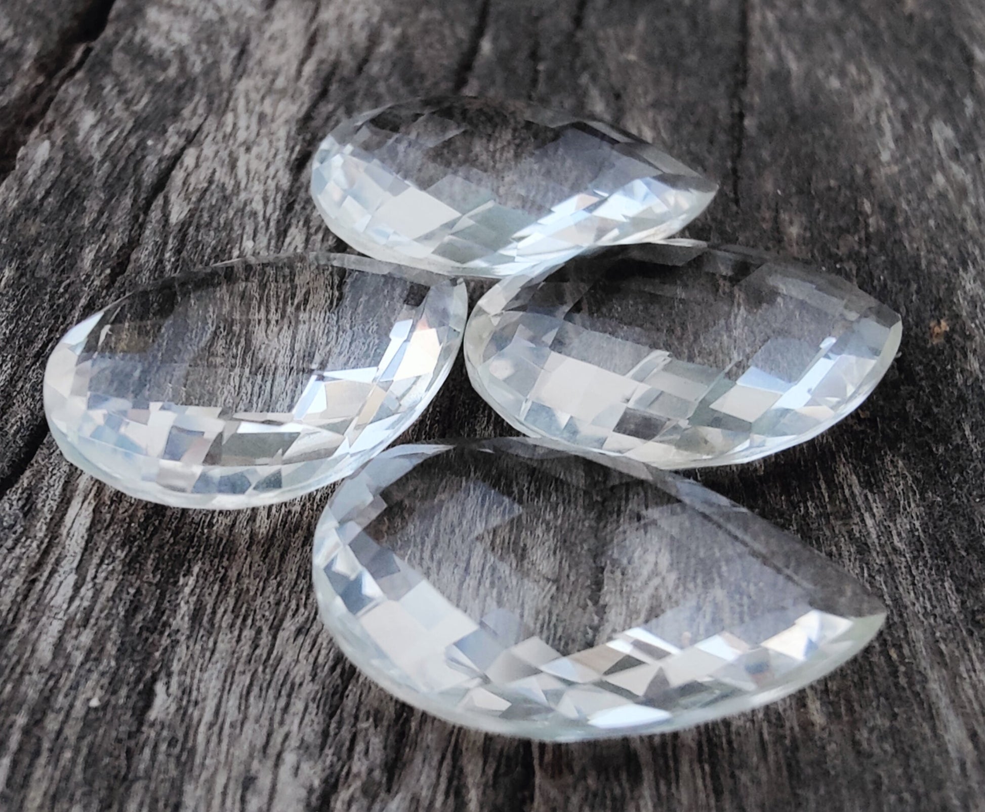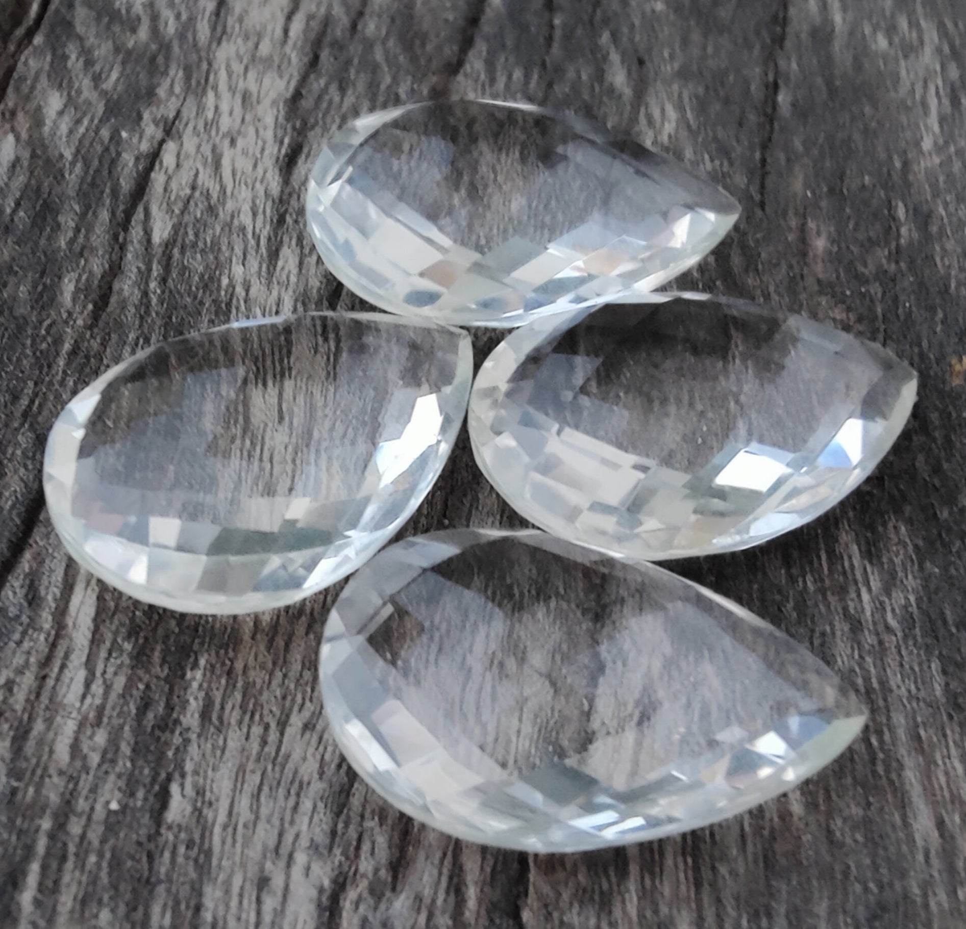 AAA+ Quality Natural Crystal Quartz Teardrop Shape Briolette Checker Cut Calibrated Pear Shape Wholesale Gemstones, All Sizes Available