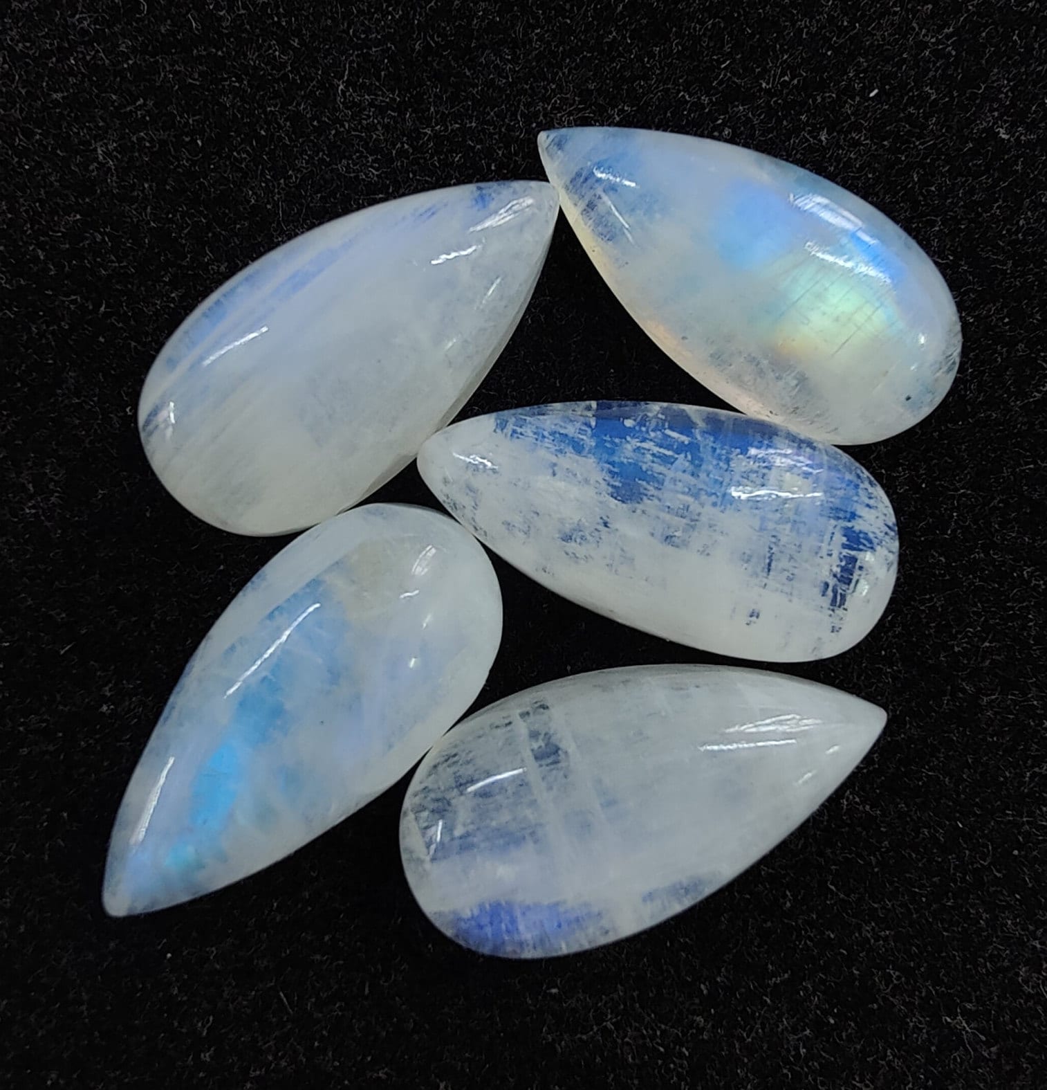 Natural Rainbow Moonstone Big Pear Shape Cabochon Flat Back Calibrated Teardrop Shape AAA+ Quality Gemstones, All Sizes Available