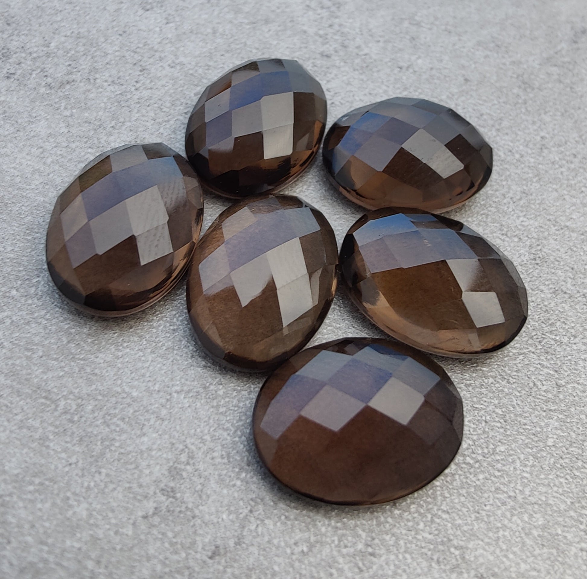 Natural Smoky Quartz Oval Shape Rose Cut Flat Back Calibrated AAA+ Quality Wholesale Gemstones, All Sizes Available