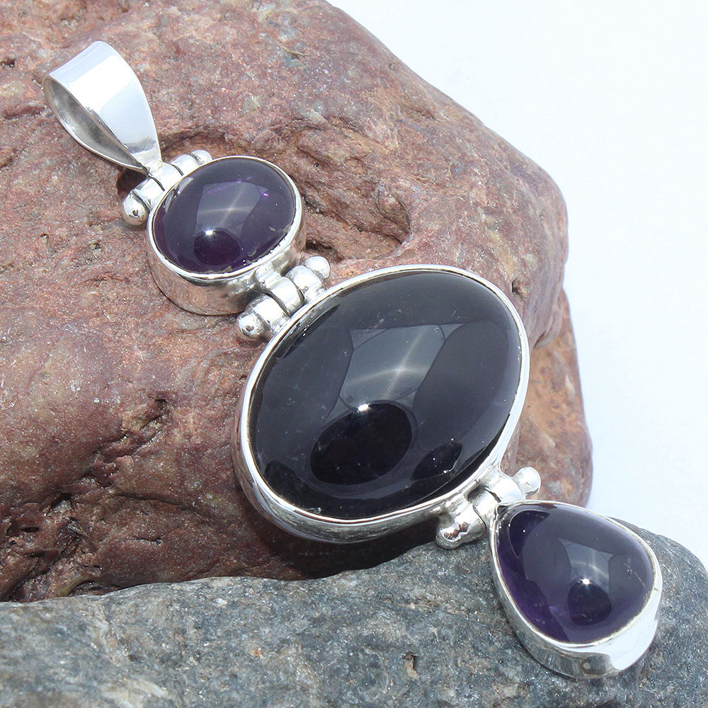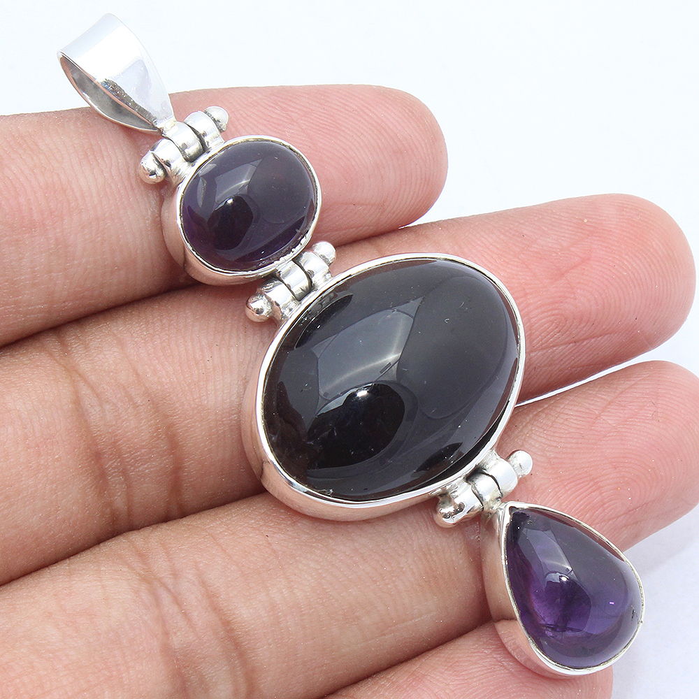 925 SOLID STERLING SILVER NATURAL AMETHYST BLACK ONYX PENDANT