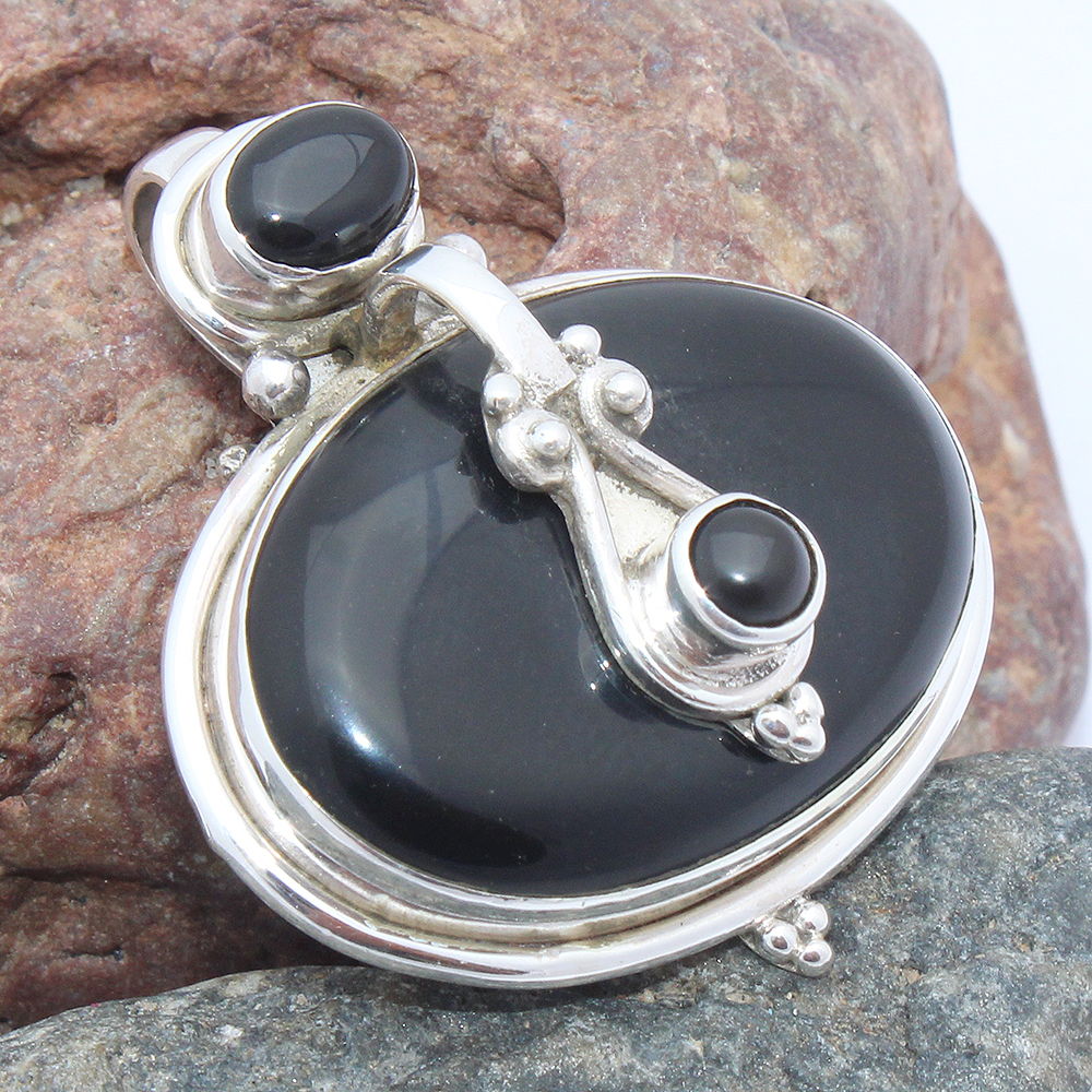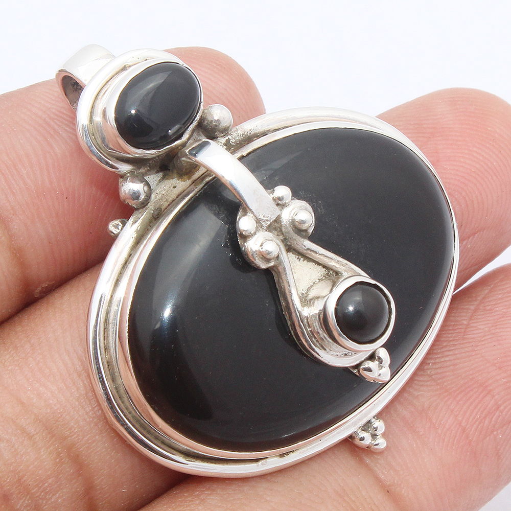 925 SOLID STERLING SILVER NATURAL BLACK ONYX DESIGNER PENDANT