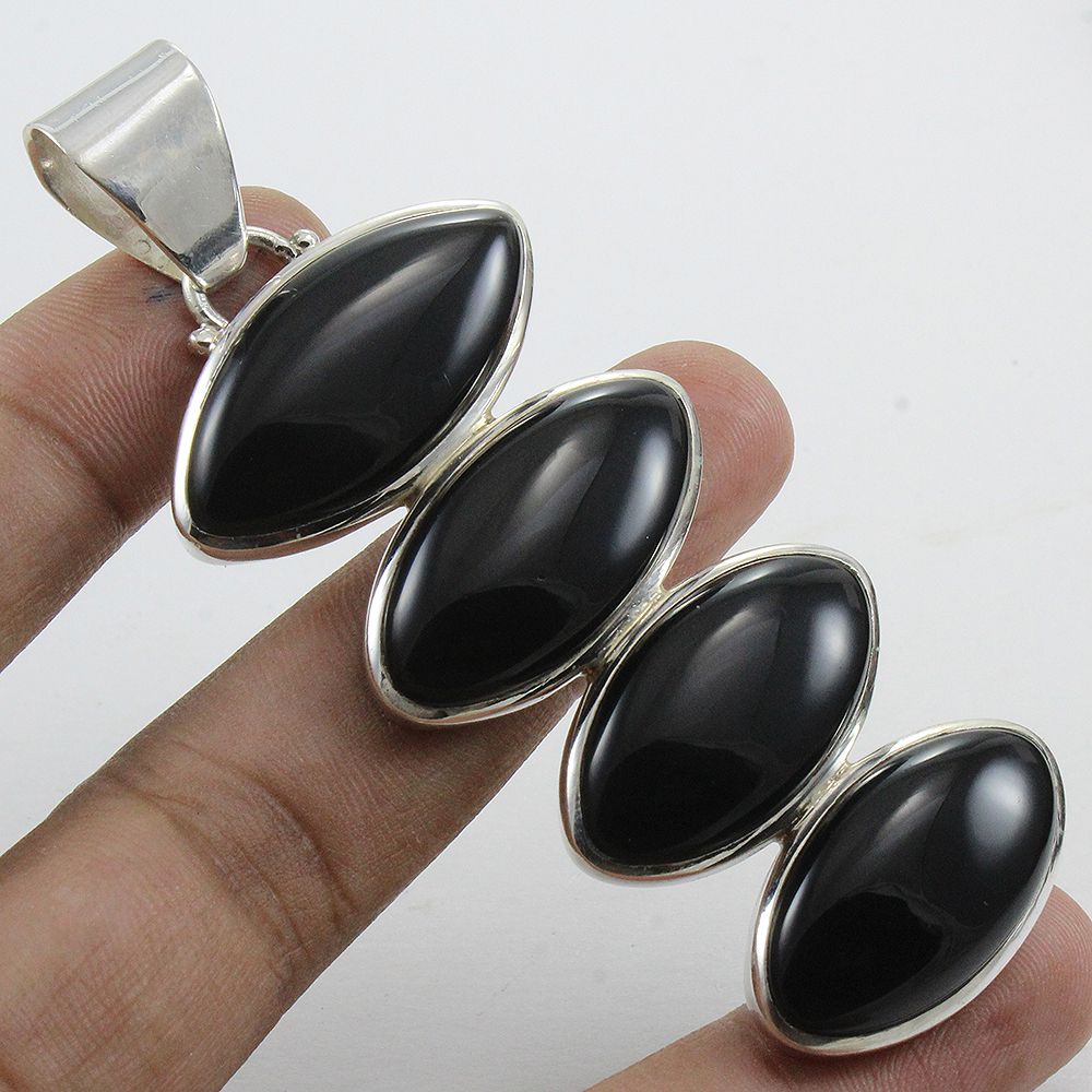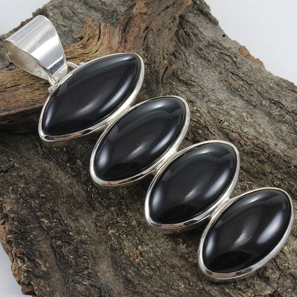 925 SOLID STERLING SILVER NATURAL BLACK ONYX MULTI STONES PENDANT