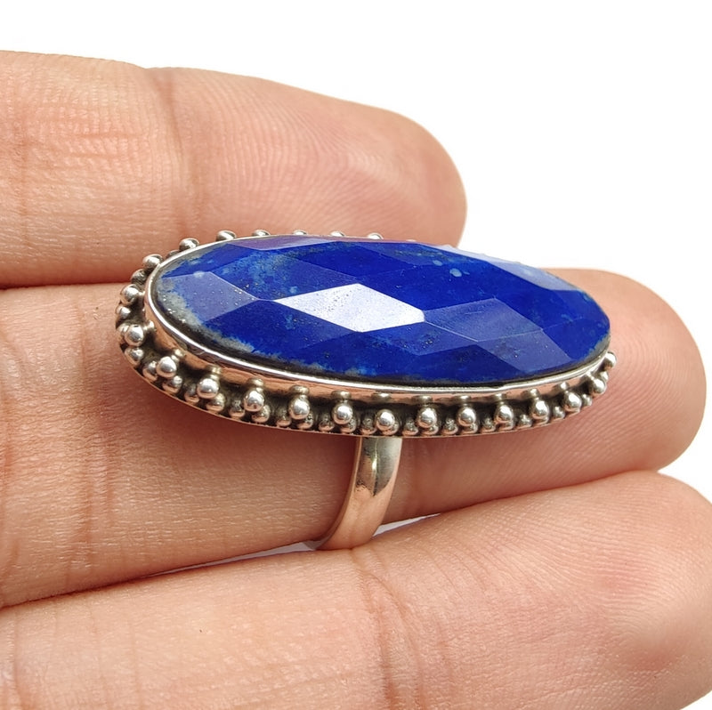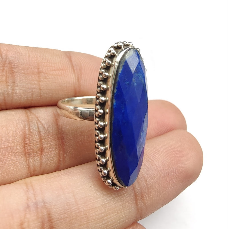 925 SOLID STERLING SILVER NATURAL LAPIS LAZULI GEMSTONES HANDMADE RING, ALL SIZES AVAILABLE