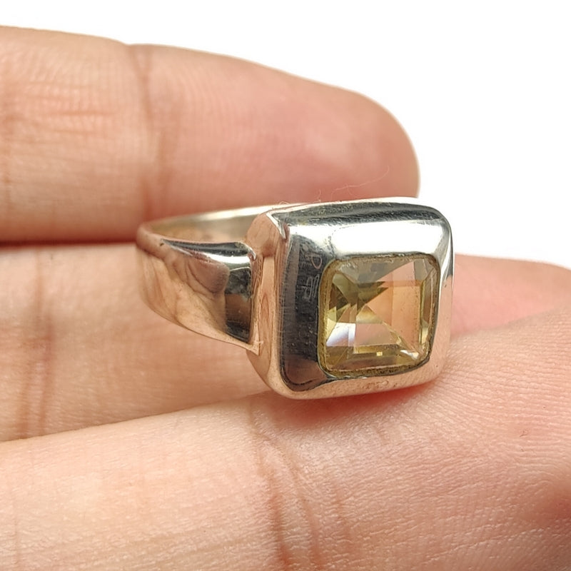 925 SOLID STERLING SILVER NATURAL LEMON QUARTZ GEMSTONES HANDMADE RING, ALL SIZES AVAILABLE
