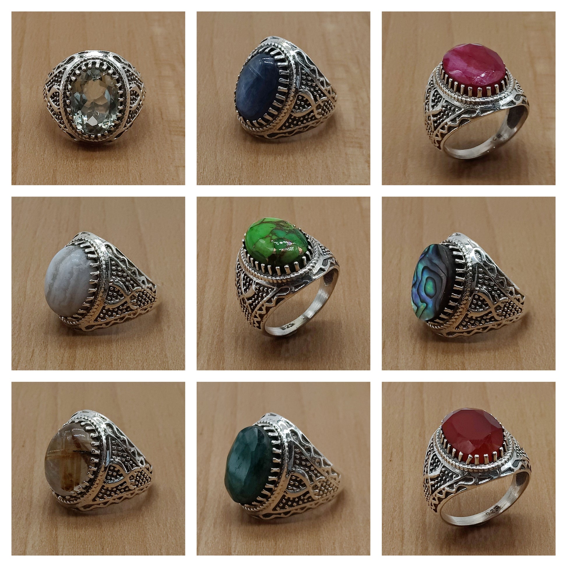 925 SOLID STERLING SILVER NATURAL GEMSTONES RINGS, ALL SIZES AVAILABLE