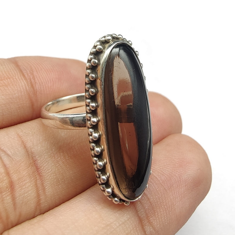 925 SOLID STERLING SILVER NATURAL SMOKY QUARTZ GEMSTONES HANDMADE RING, ALL SIZES AVAILABLE