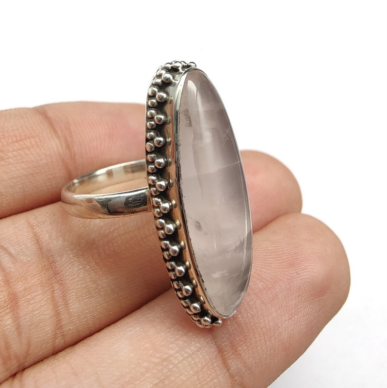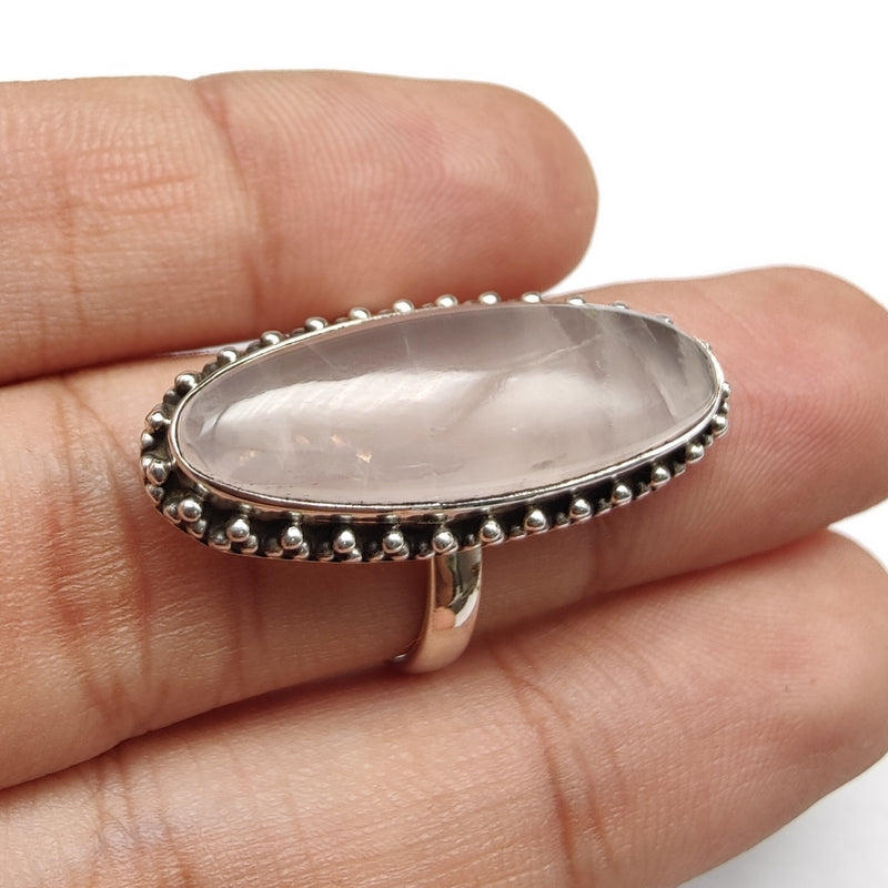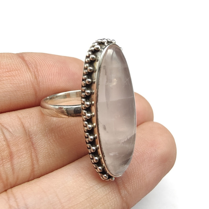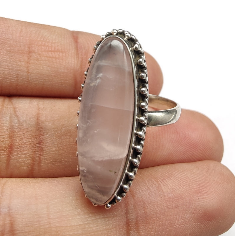 925 SOLID STERLING SILVER NATURAL ROSE QUARTZ GEMSTONES HANDMADE RING, ALL SIZES AVAILABLE