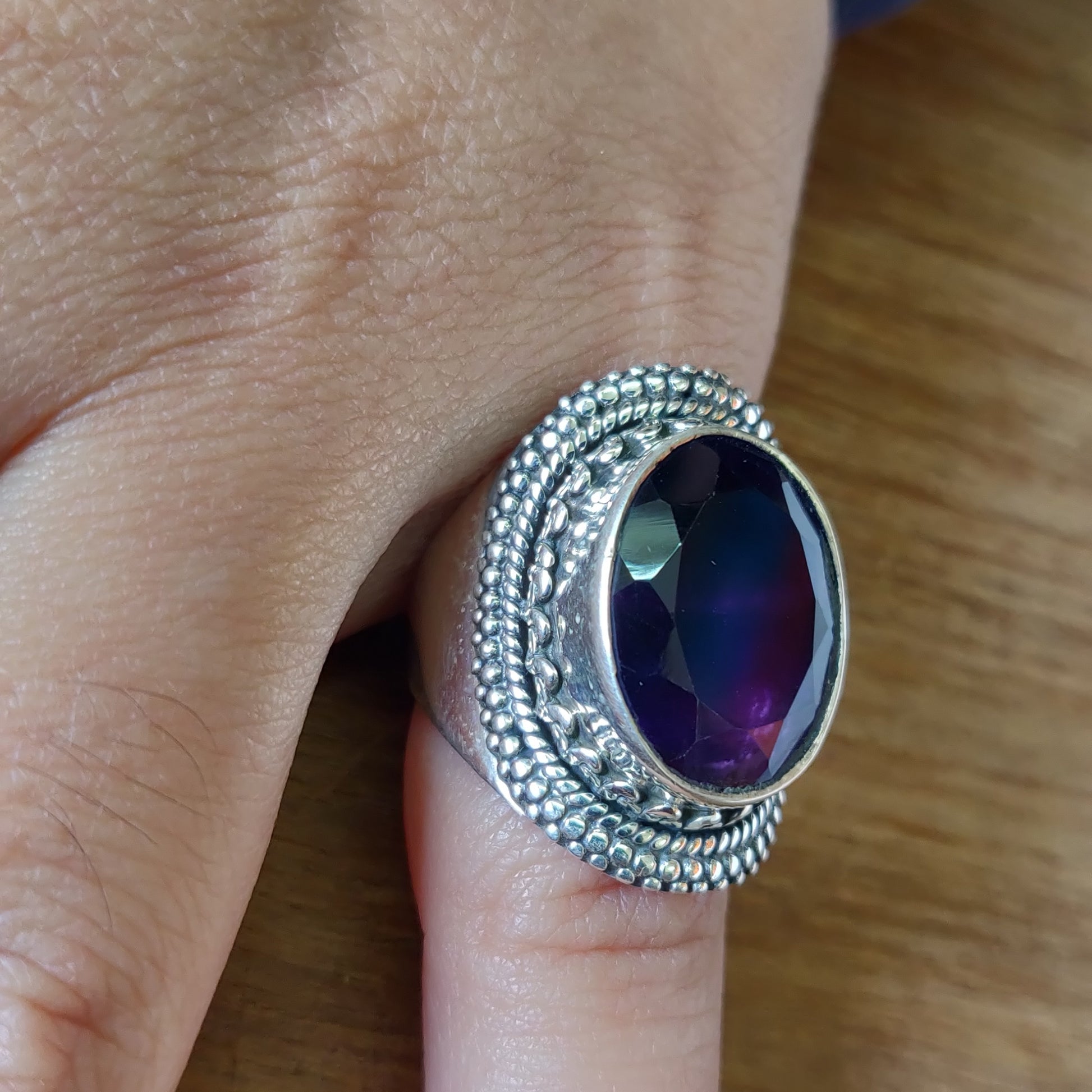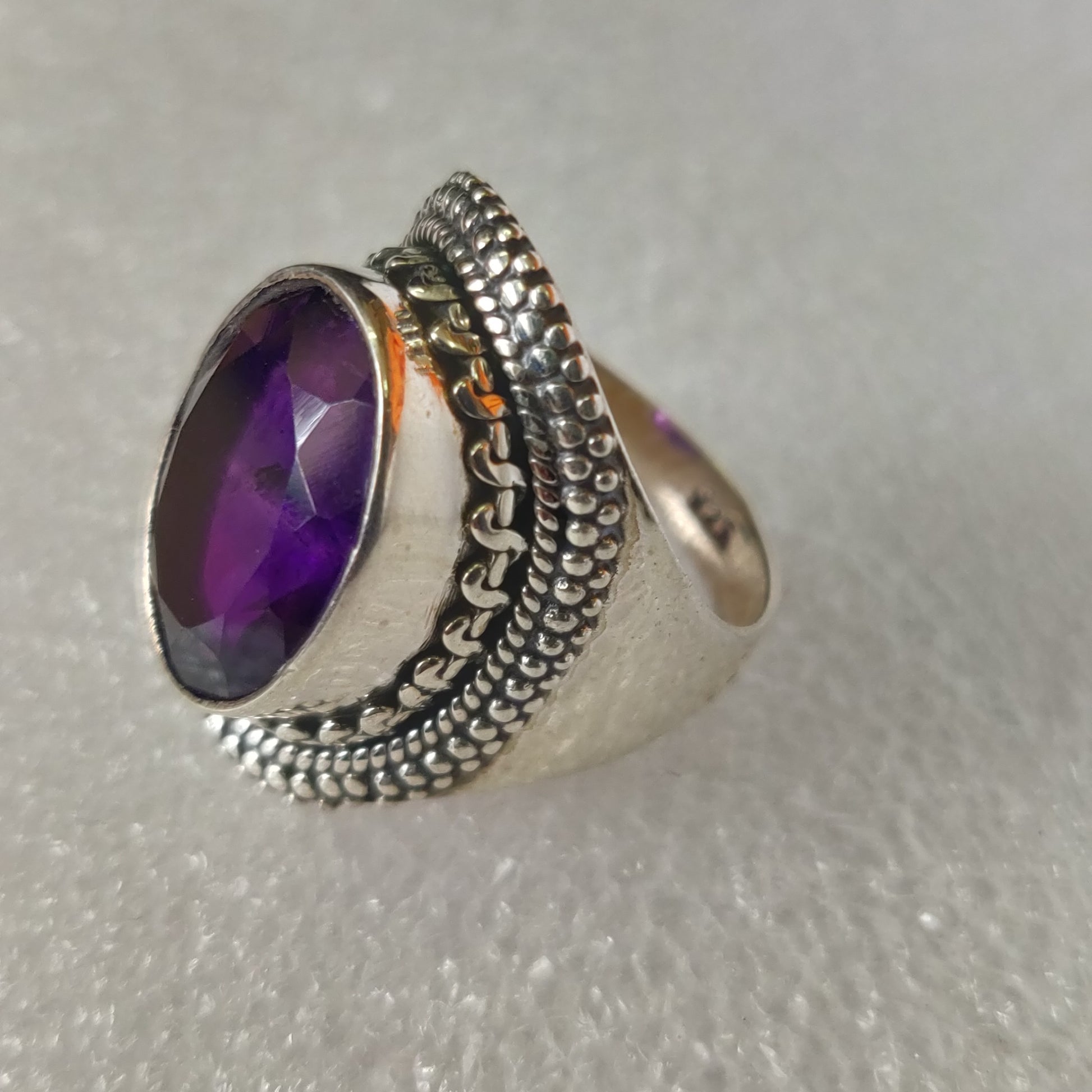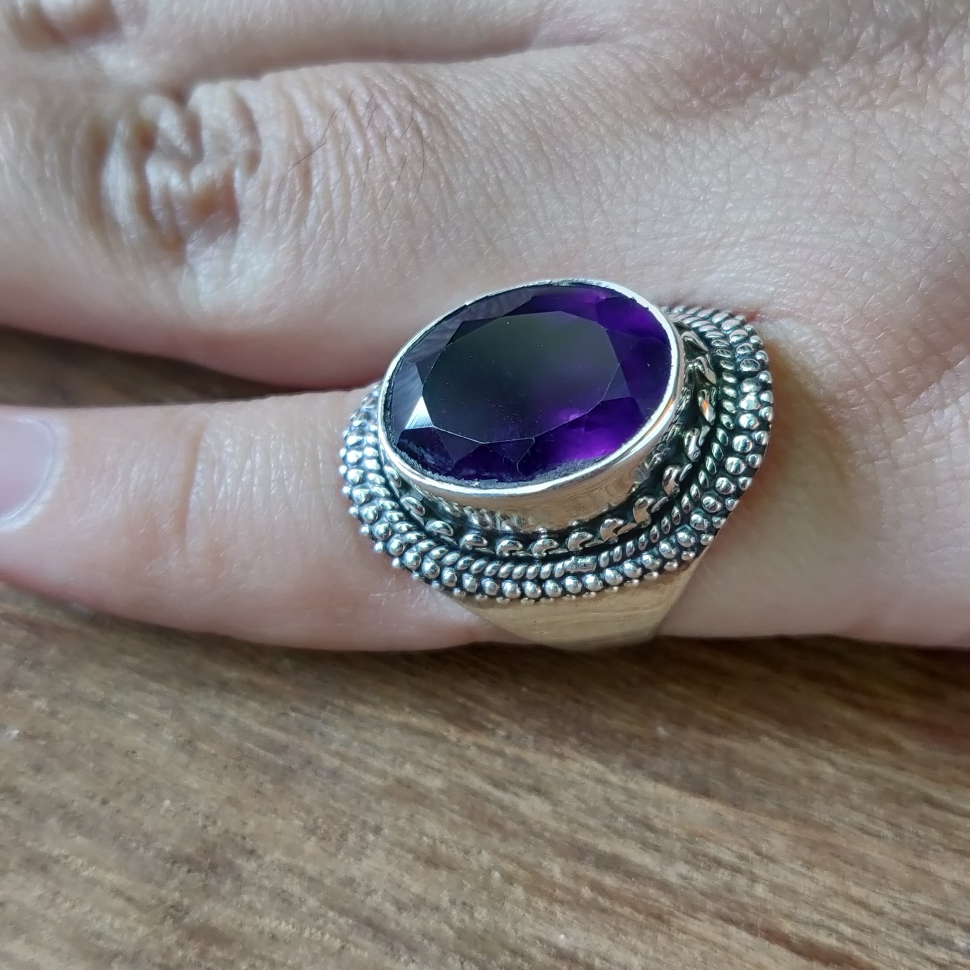 925 SOLID STERLING SILVER NATURAL PURPLE AMETHYST GEMSTONES HANDMADE RING, ALL SIZES AVAILABLE