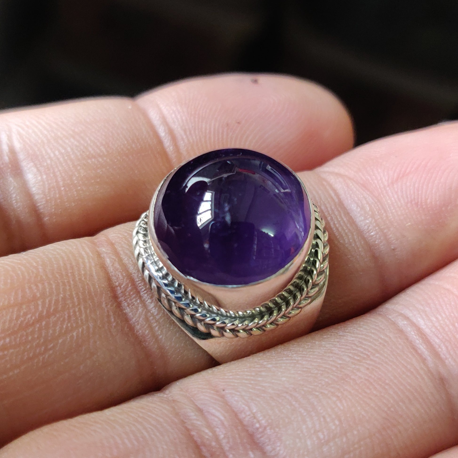 925 SOLID STERLING SILVER NATURAL PURPLE AMETHYST GEMSTONES HANDMADE RING, ALL SIZES AVAILABLE