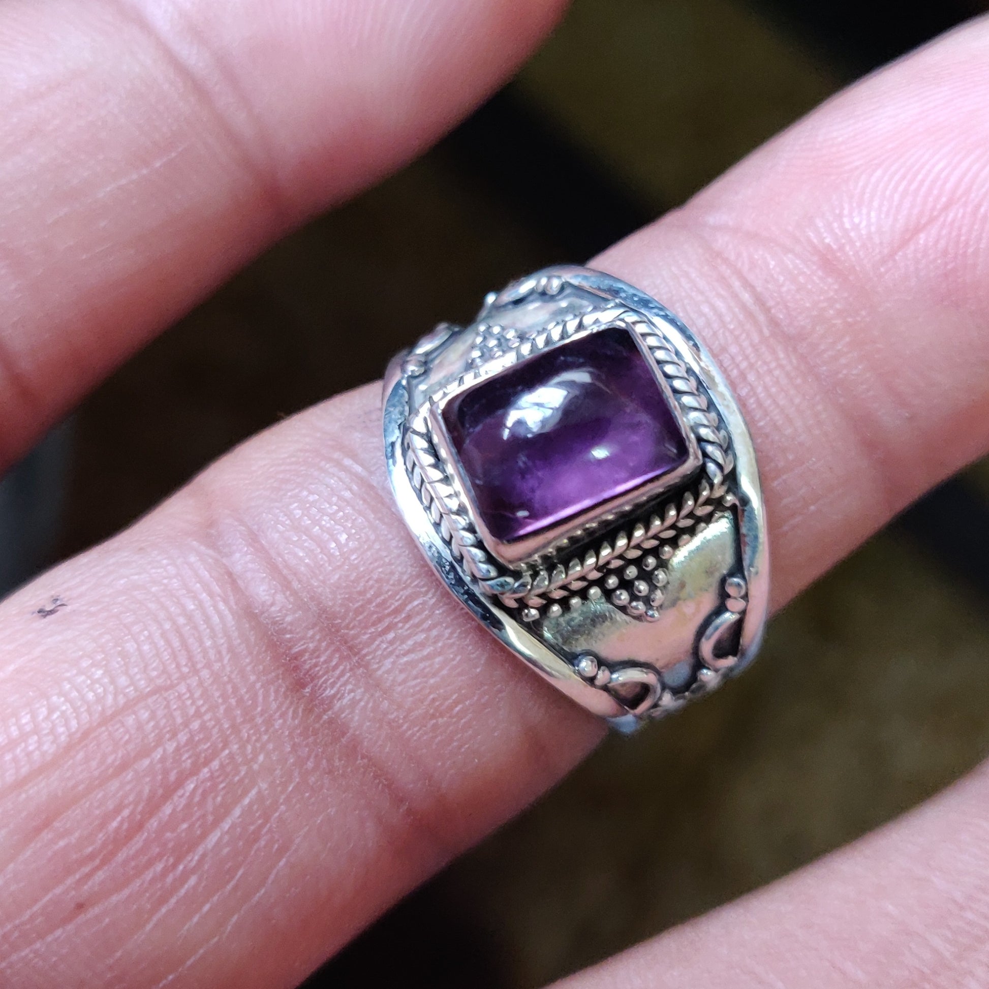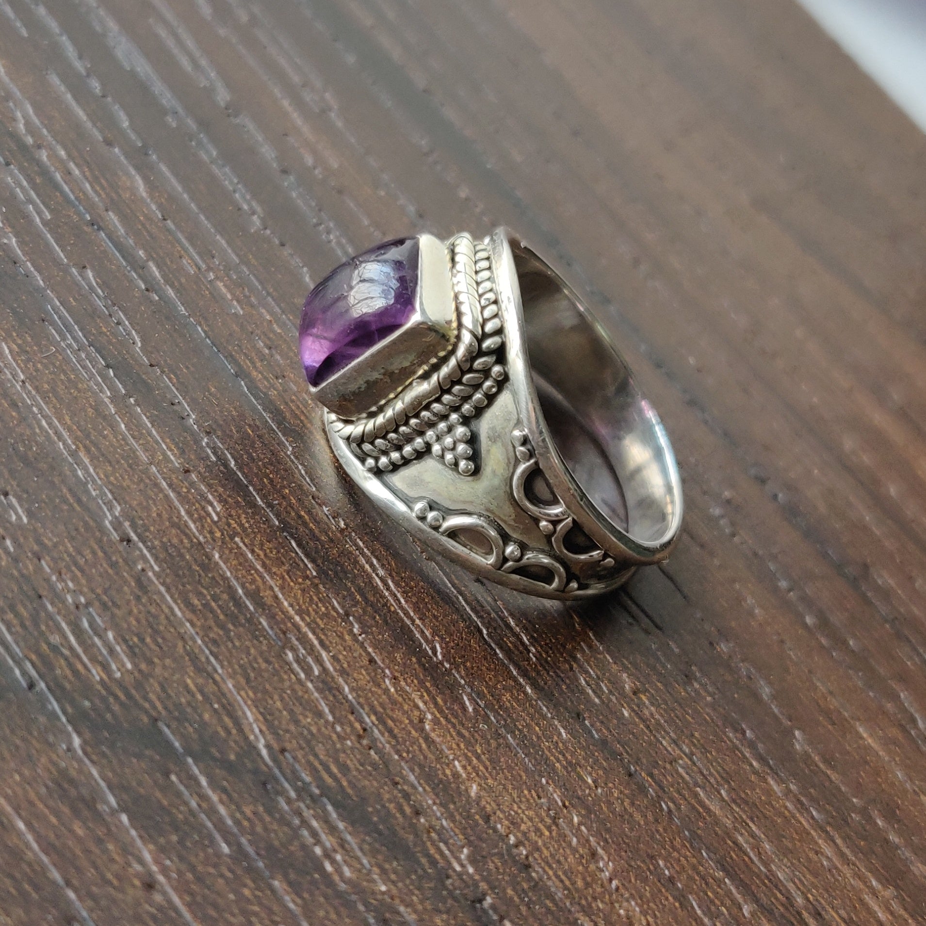 925 SOLID STERLING SILVER NATURAL PURPLE AMETHYST GEMSTONES HANDMADE RING, ALL SIZES AVAILABLE