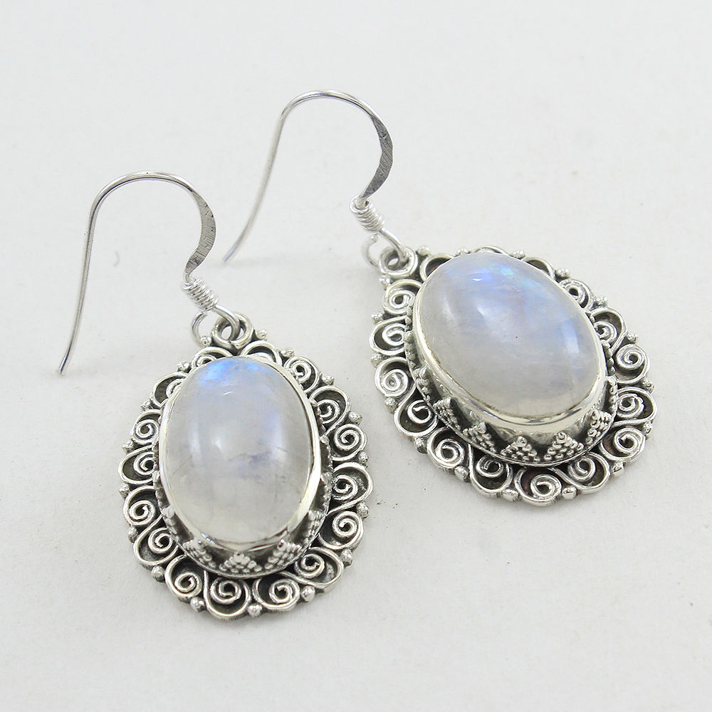 925 SOLID STERLING SILVER NATURAL RAINBOW MOONSTONE GEMSTONE HOOK EARRING