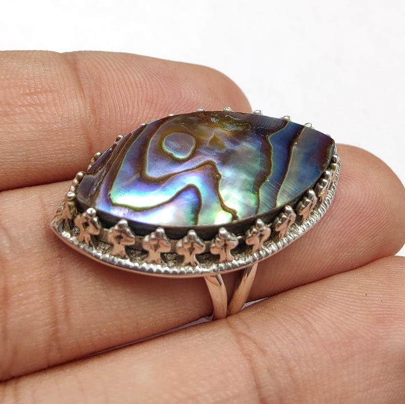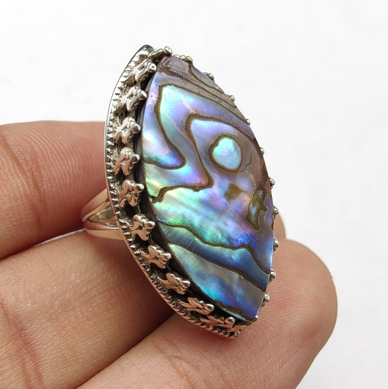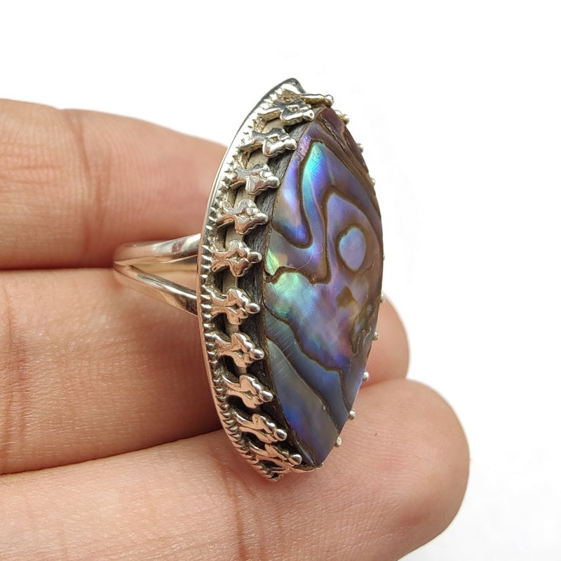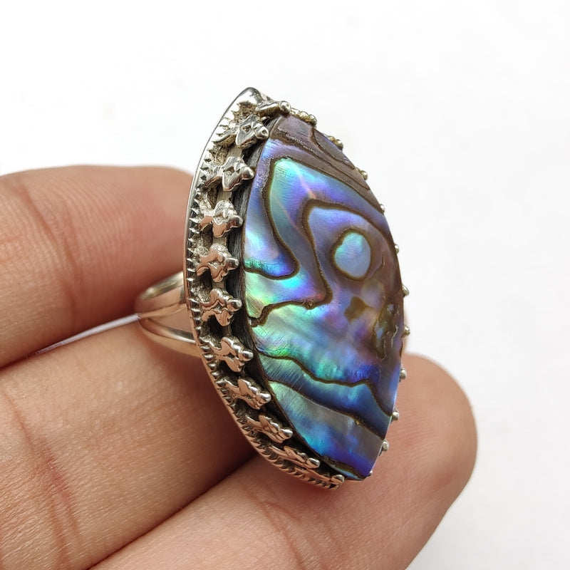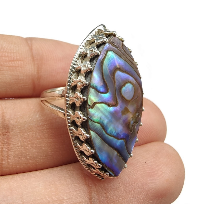 925 SOLID STERLING SILVER NATURAL ABALONE SHELL GEMSTONES HANDMADE RING, ALL SIZES AVAILABLE