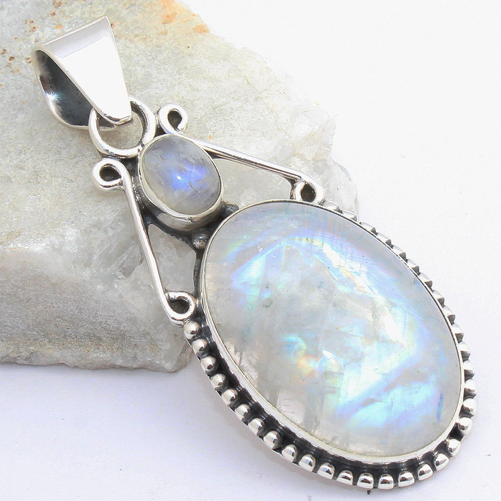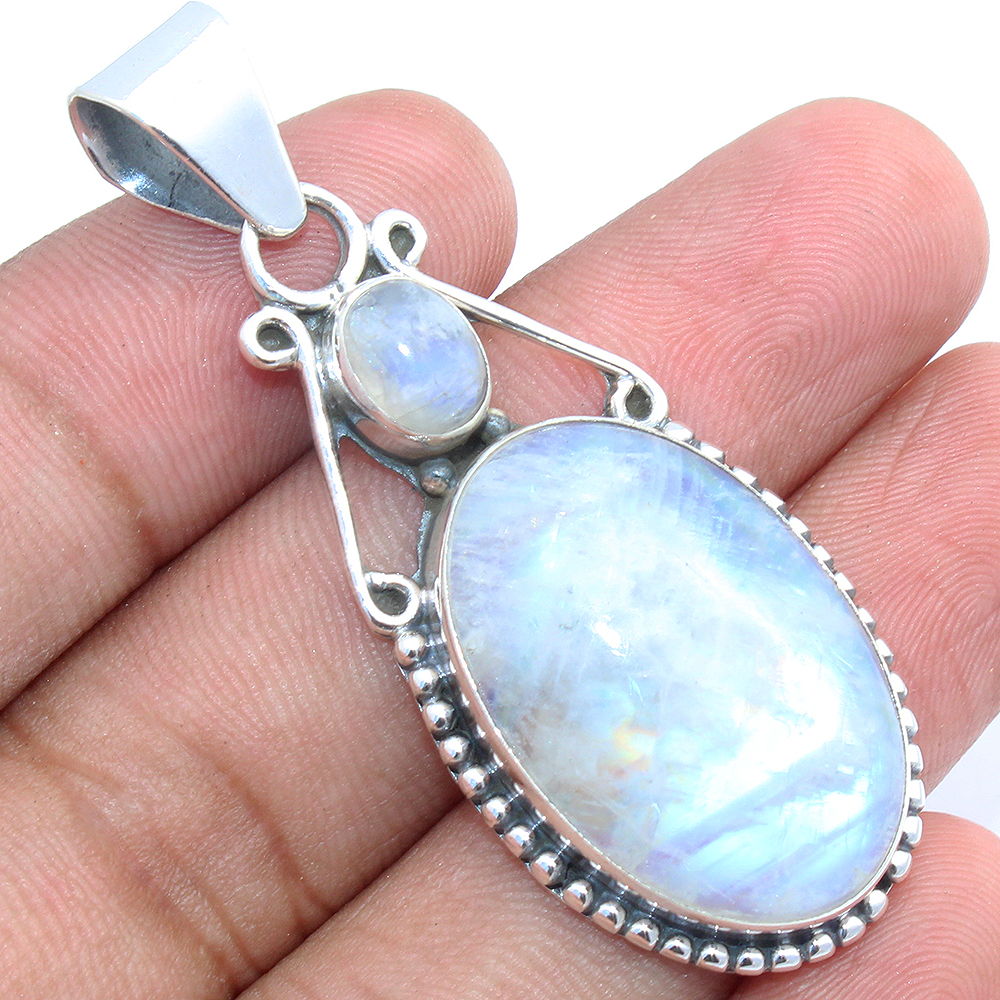 925 SOLID STERLING SILVER NATURAL RAINBOW MOONSTONE PENDANT