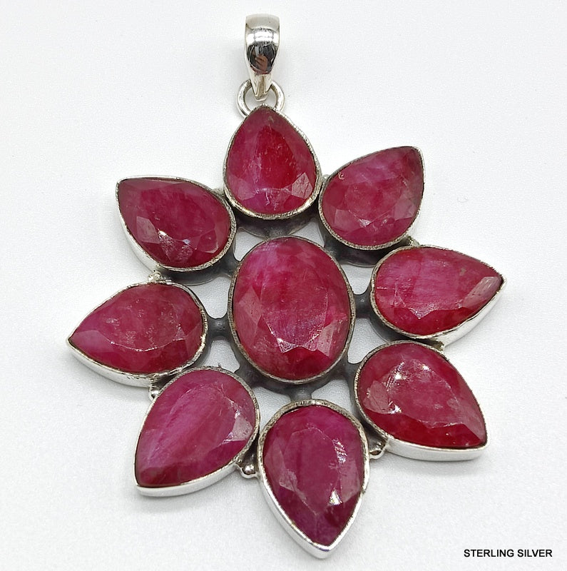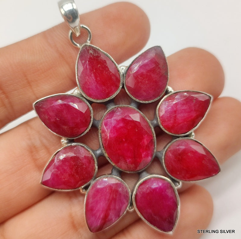 925 SOLID STERLING SILVER NATURAL RUBY FLOWER HANDMADE PENDANT