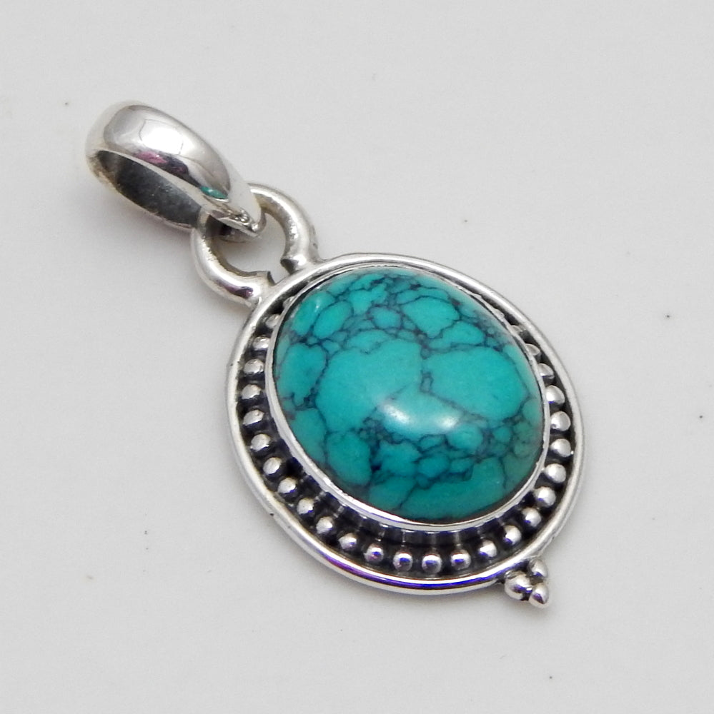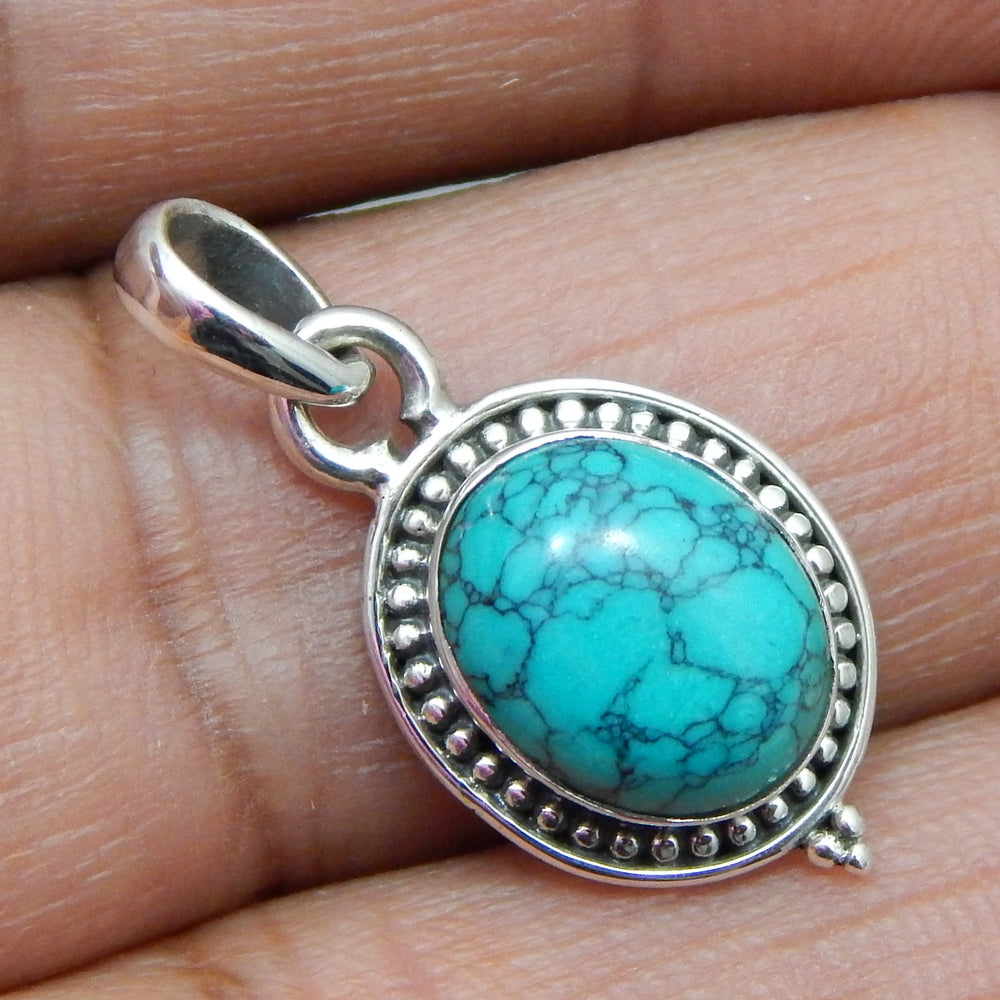 925 SOLID STERLING SILVER NATURAL TIBETAN TURQUOISE GEMSTONE HANDMADE PENDANT