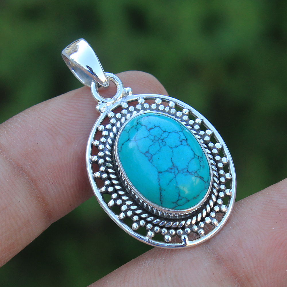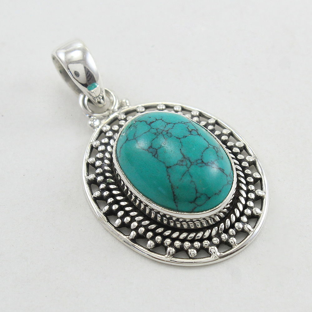 925 SOLID STERLING SILVER NATURAL TIBETAN TURQUOISE GEMSTONE PENDANT