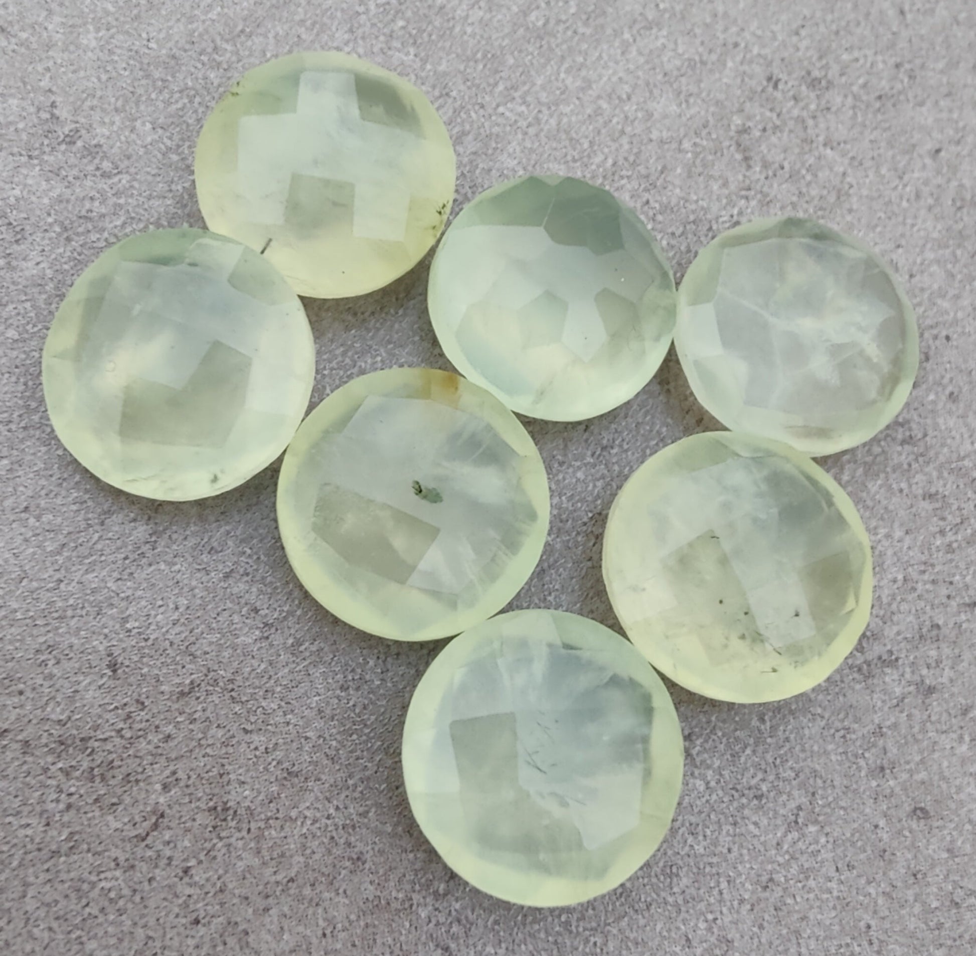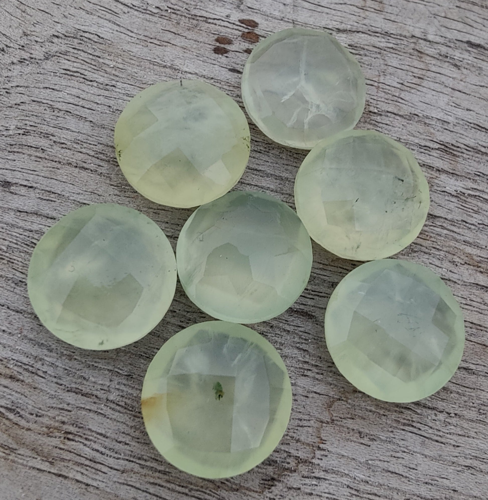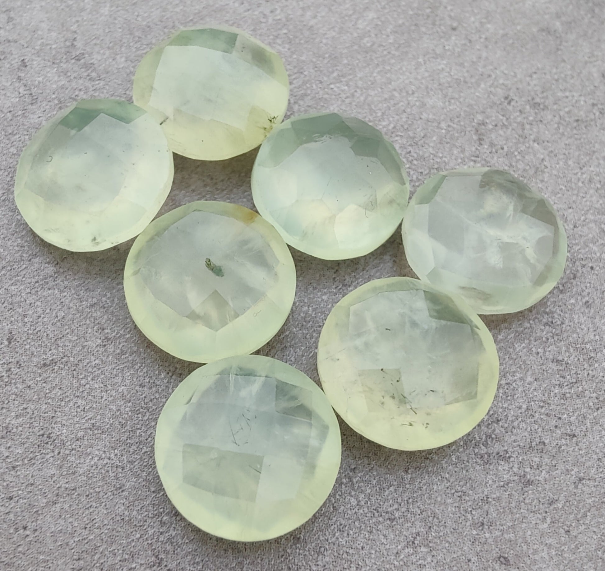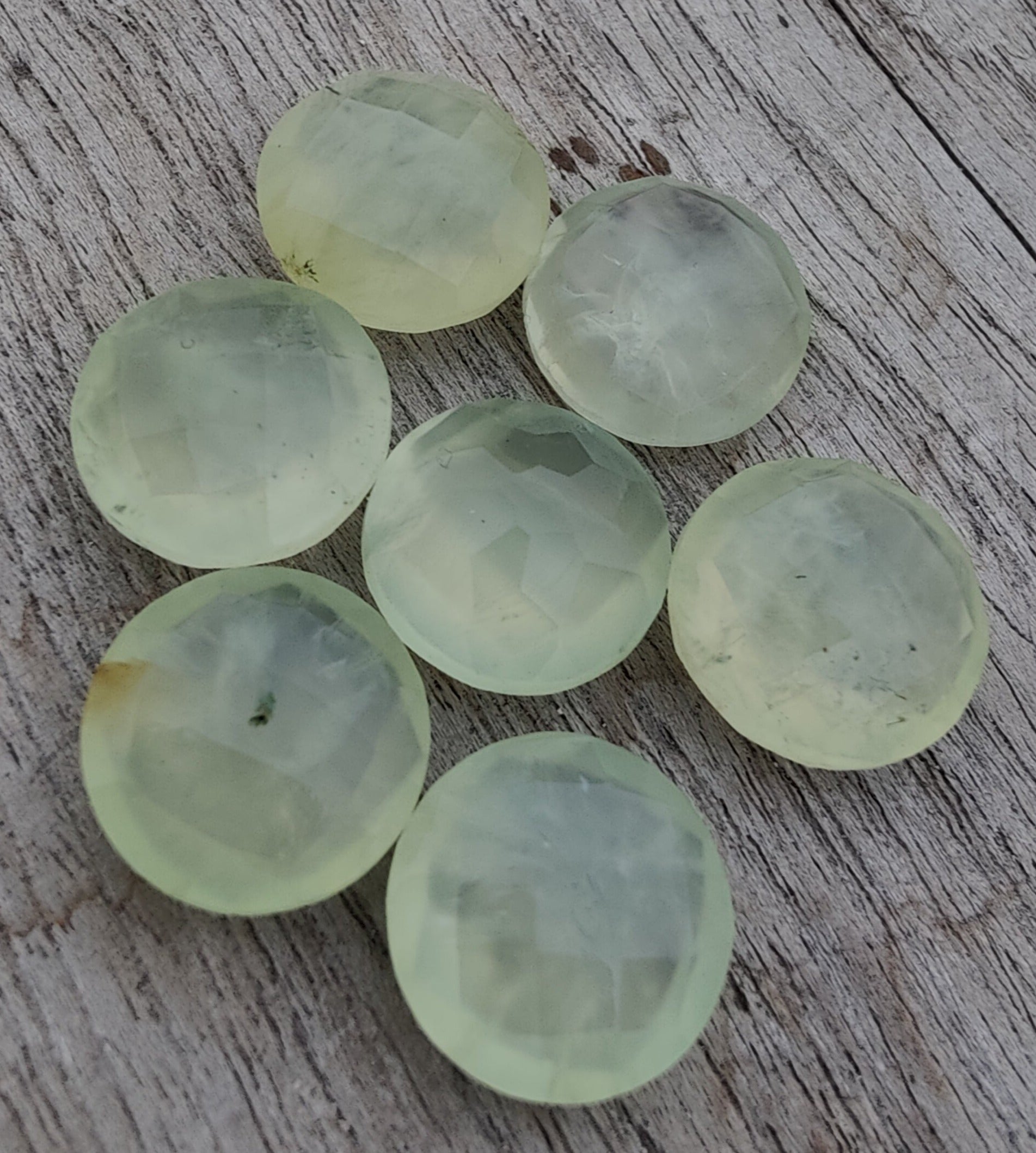AAA+ QUALITY NATURAL PREHNITE ROUND SHAPE BRIOLETTE FLAT BACK CALIBRATED GEMSTONES, ALL SIZES AVAILABLE