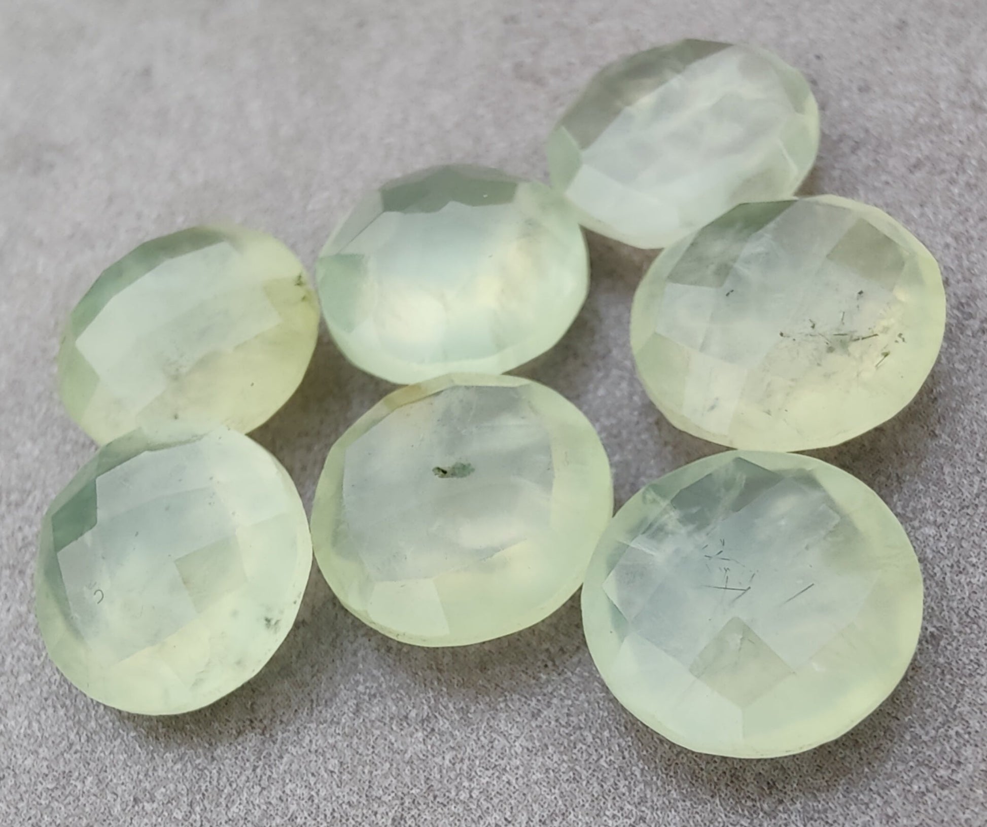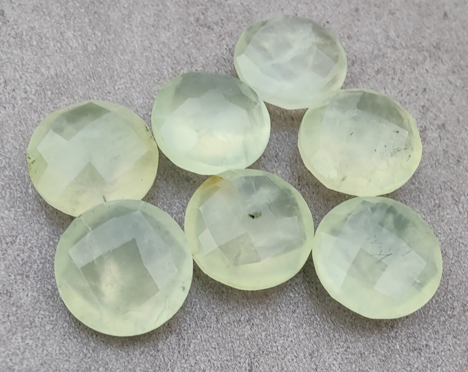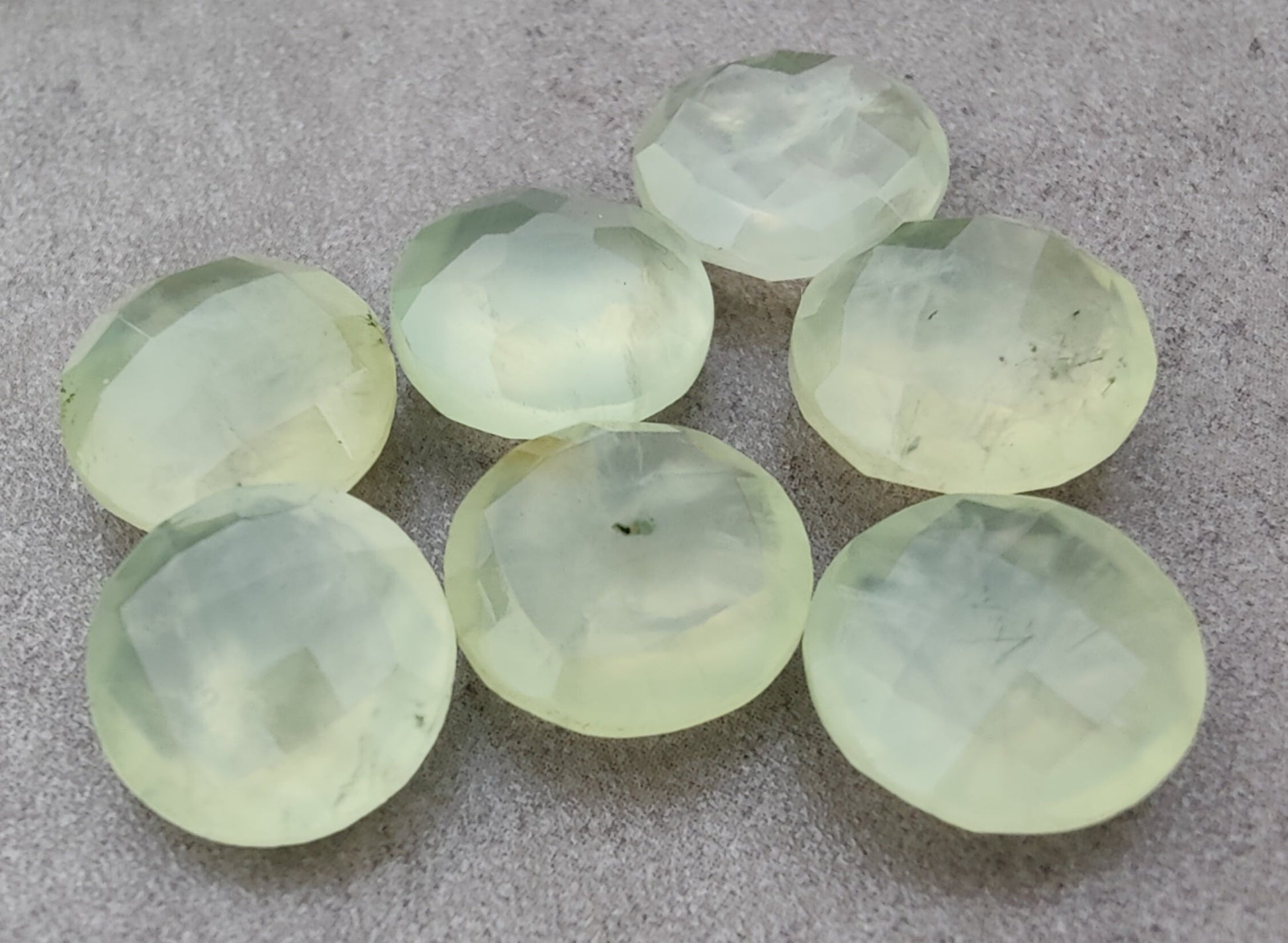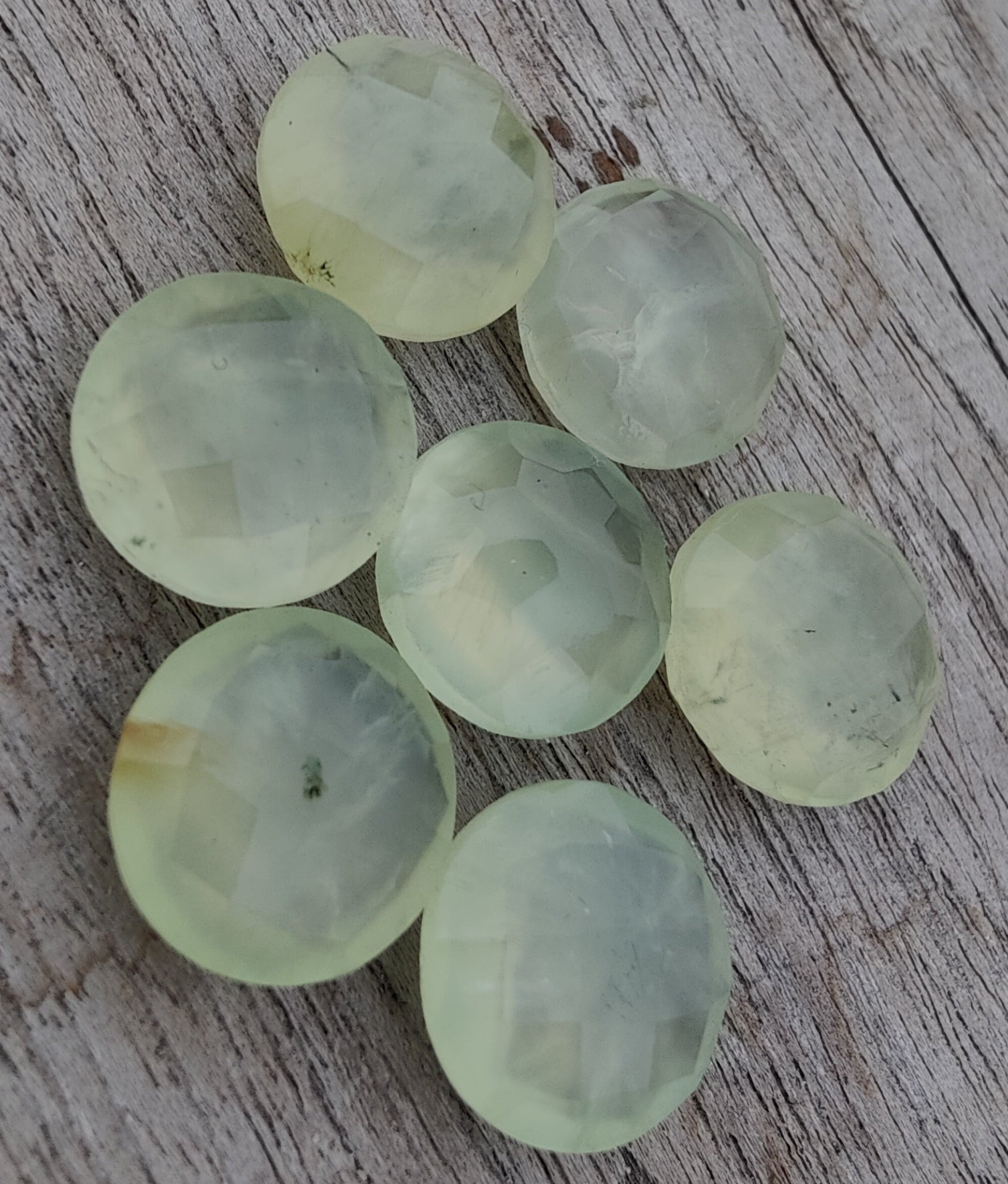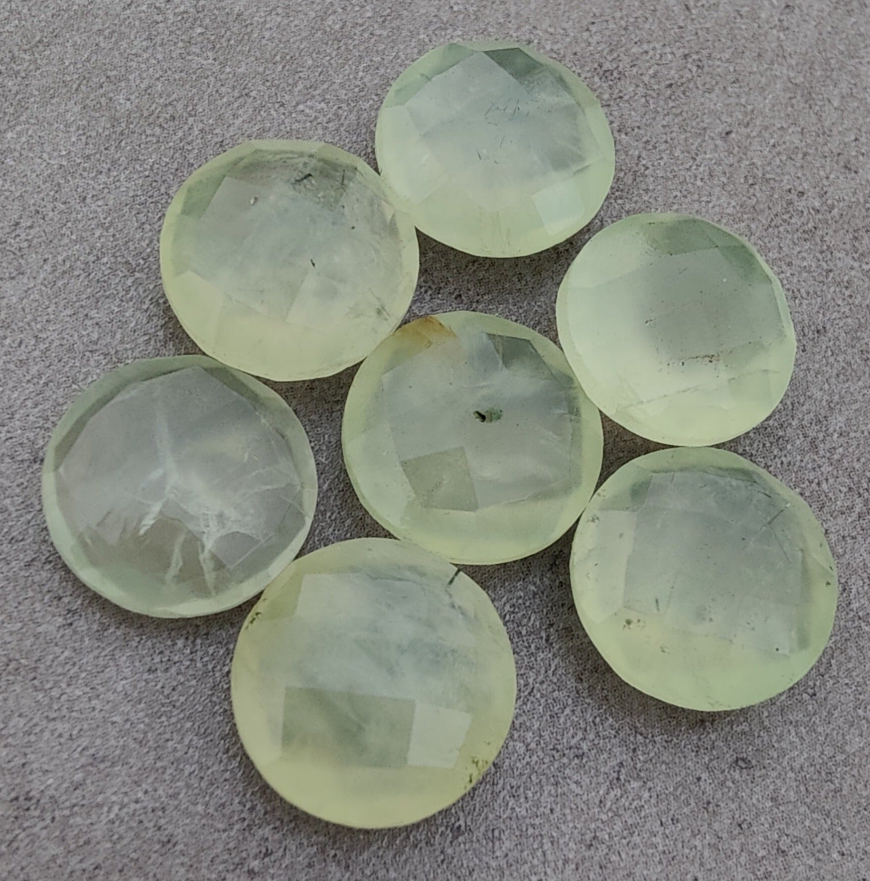 AAA+ QUALITY NATURAL PREHNITE ROUND SHAPE BRIOLETTE FLAT BACK CALIBRATED GEMSTONES, ALL SIZES AVAILABLE