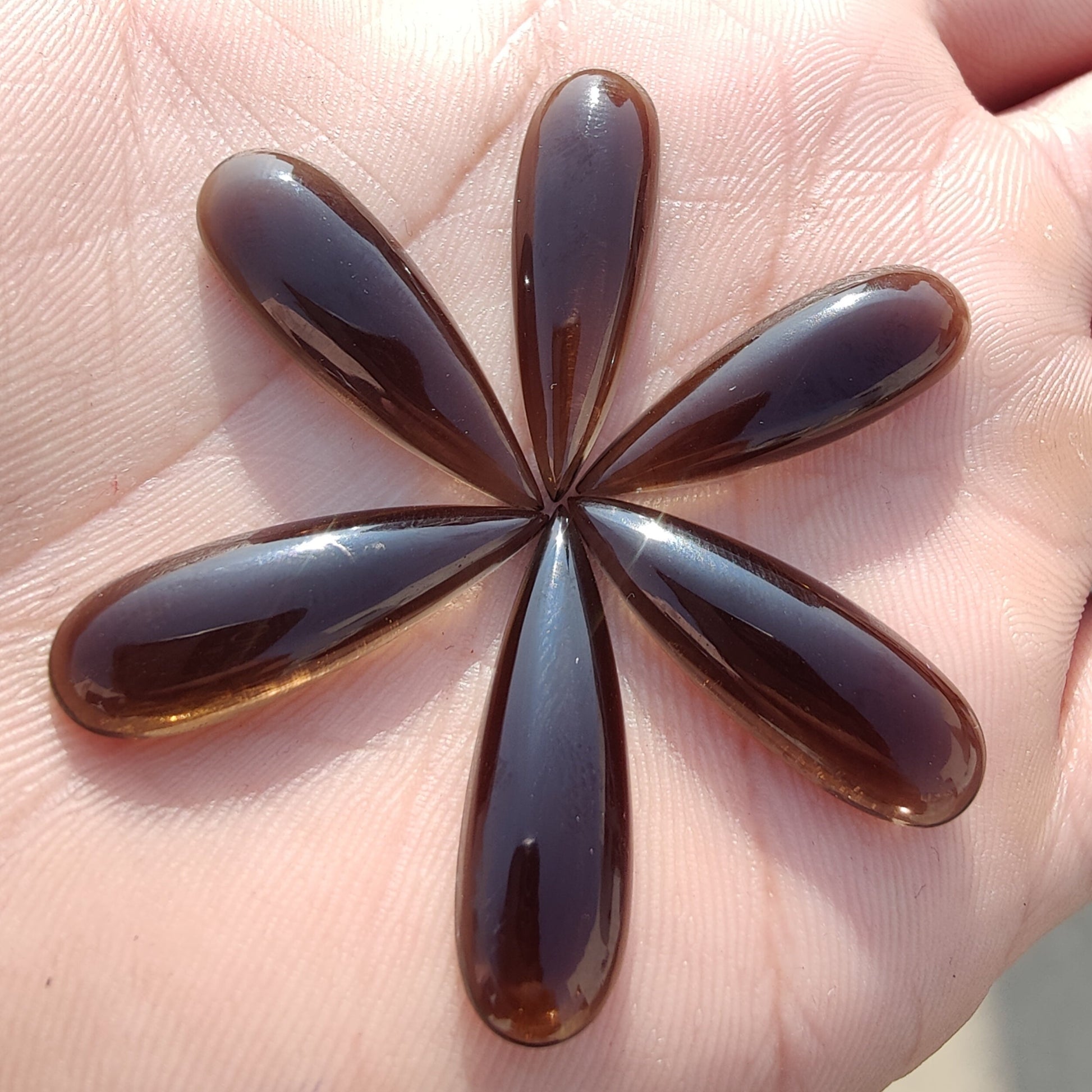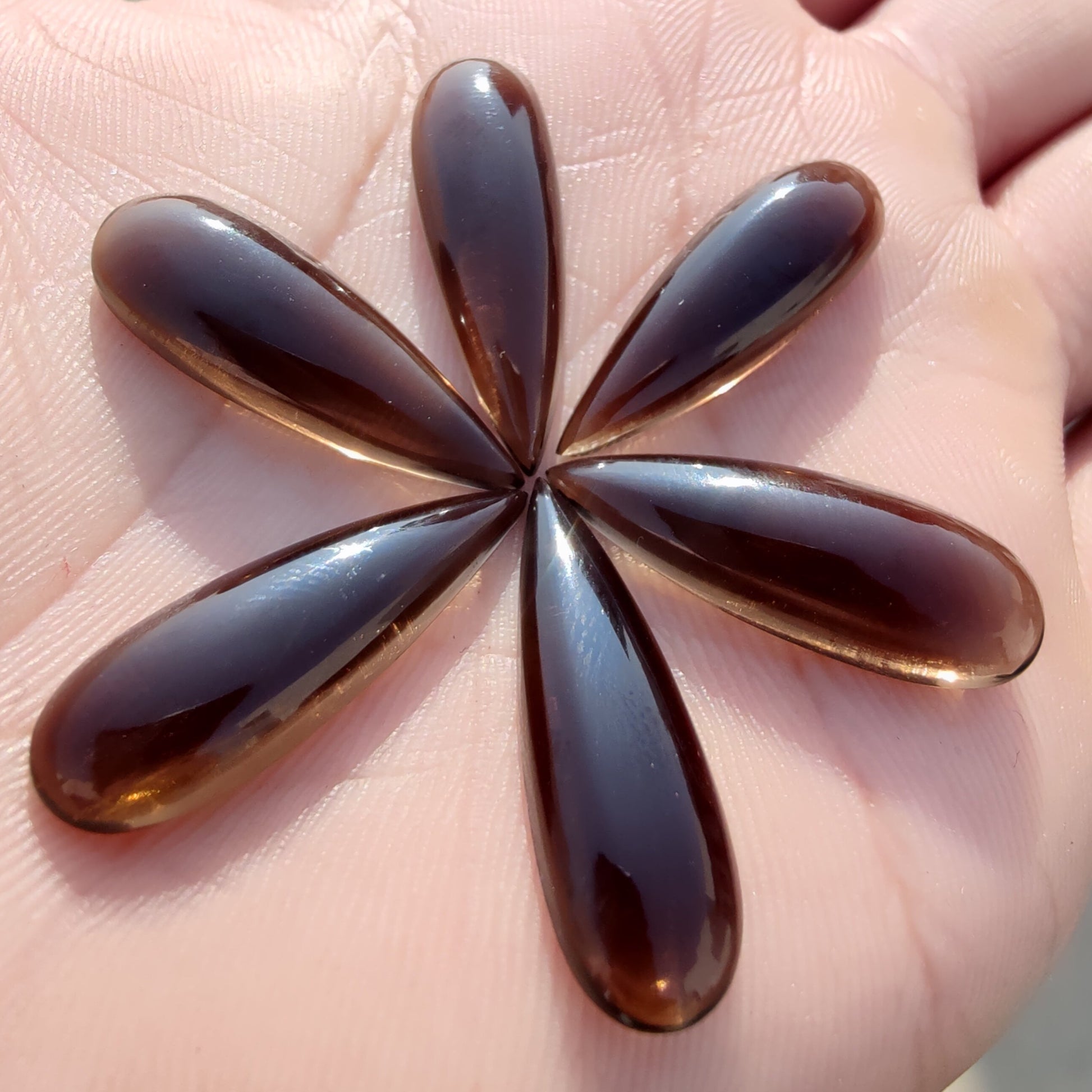NATURAL SMOKY QUARTZ TEARDROP CABOCHON FLAT BACK BIG PEAR SHAPE CALIBRATED GEMSTONES, ALL SIZES AVAILABLE