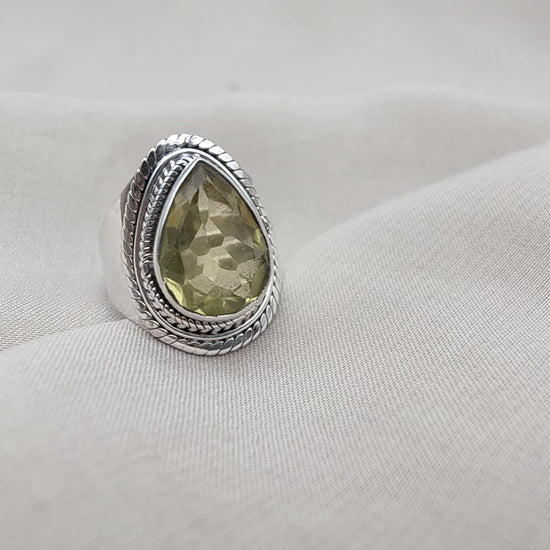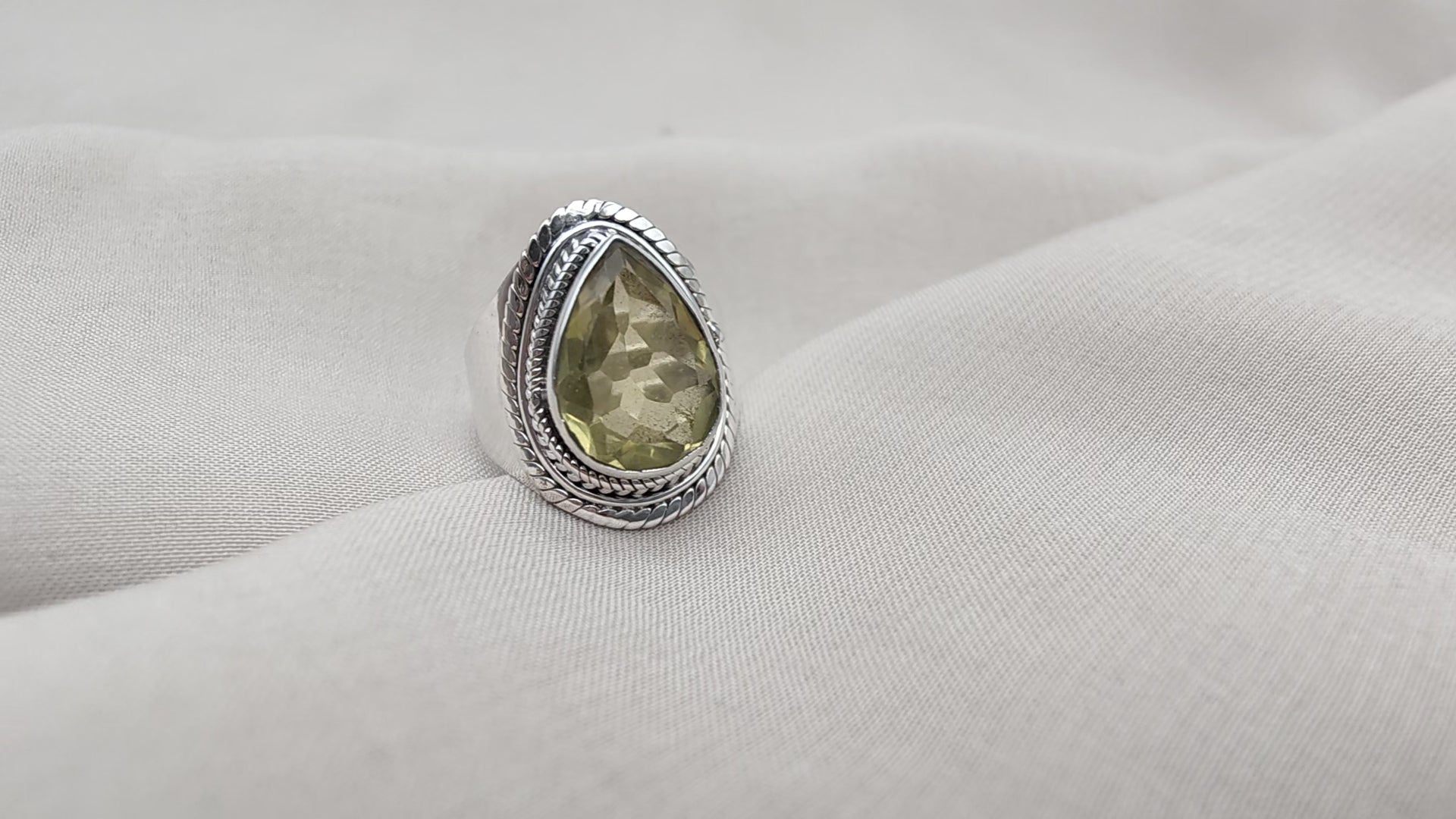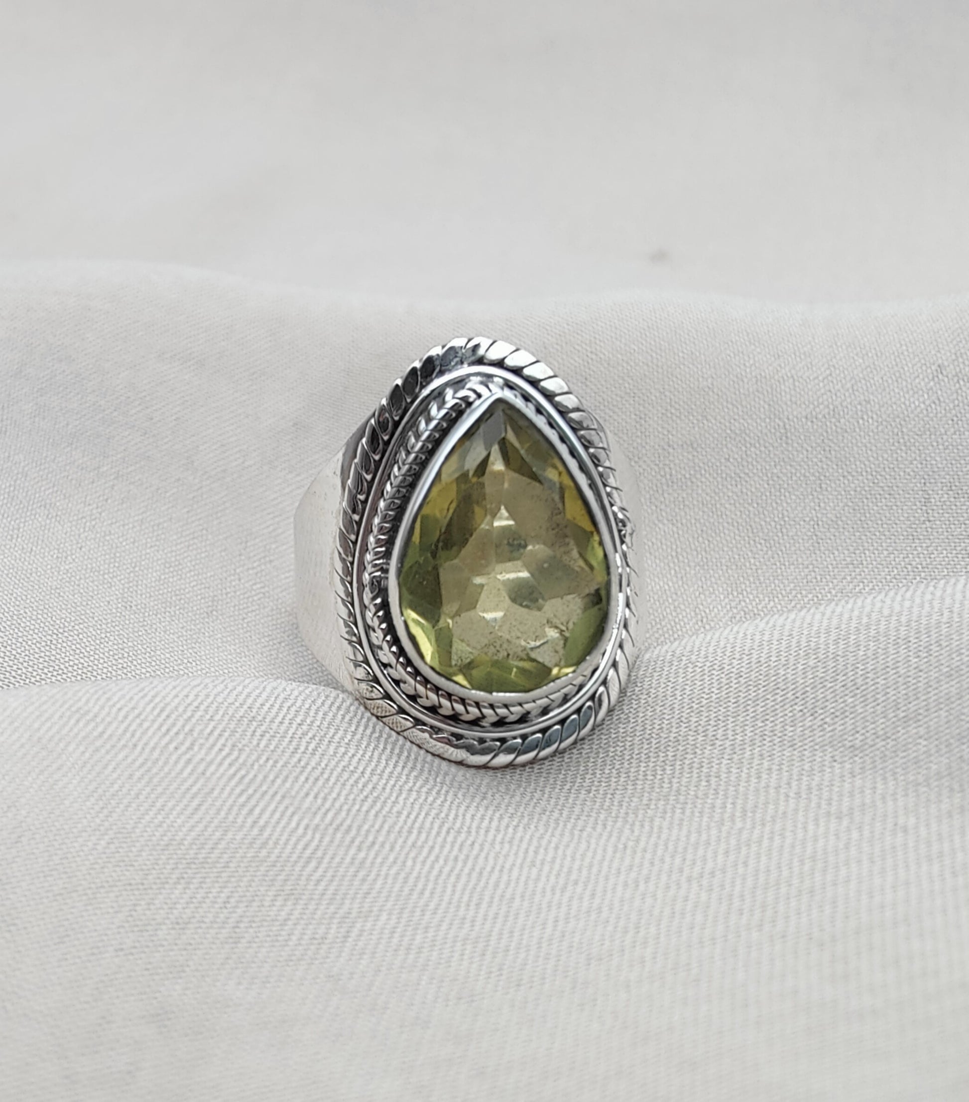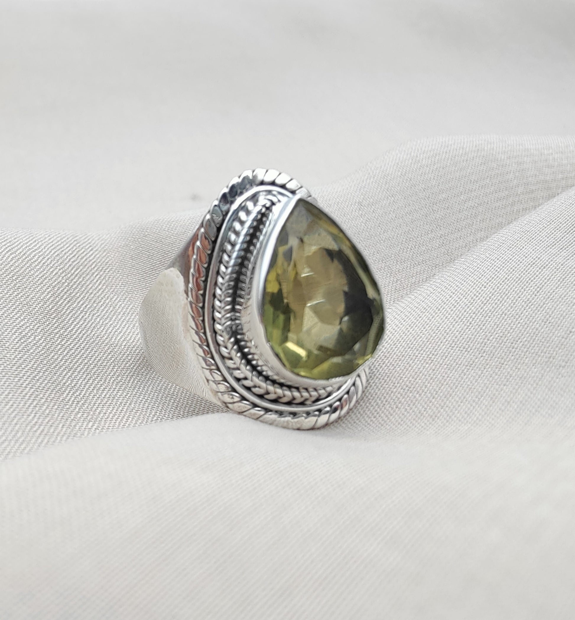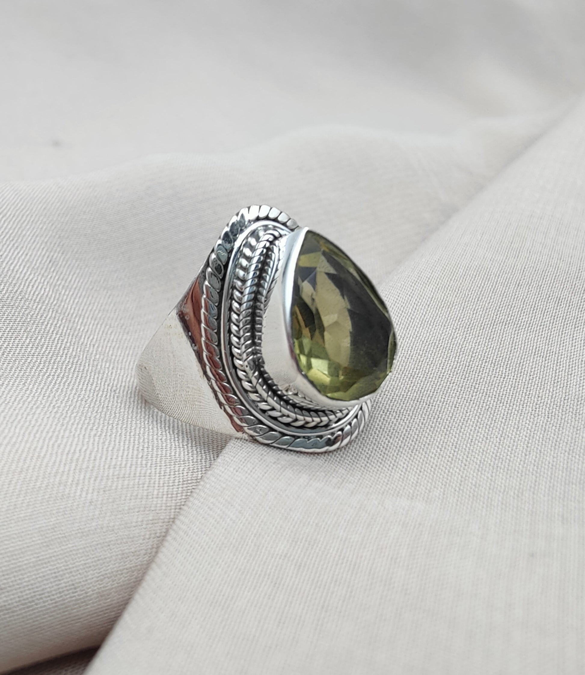 925 SOLID STERLING SILVER NATURAL LEMON QUARTZ GEMSTONE HANDMADE RING, ALL SIZES AVAILABLE