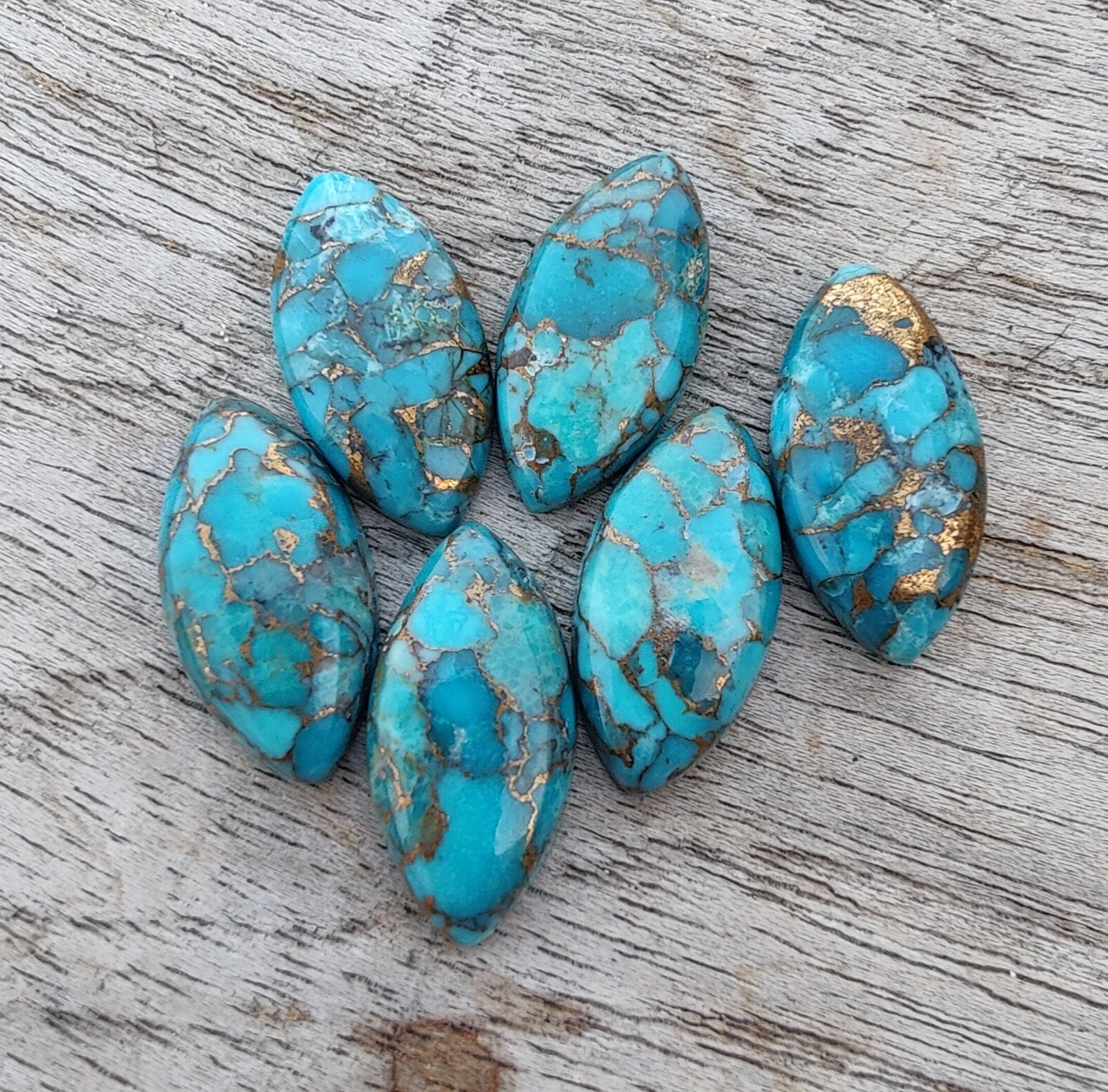 Natural Blue Copper Turquoise Marquise Shape Cabochon Flat Back Calibrated AAA+ Quality Wholesale Gemstones, All Sizes Available