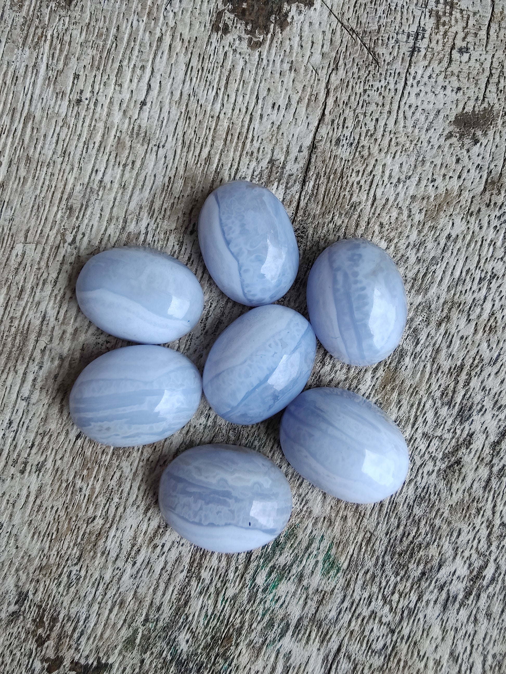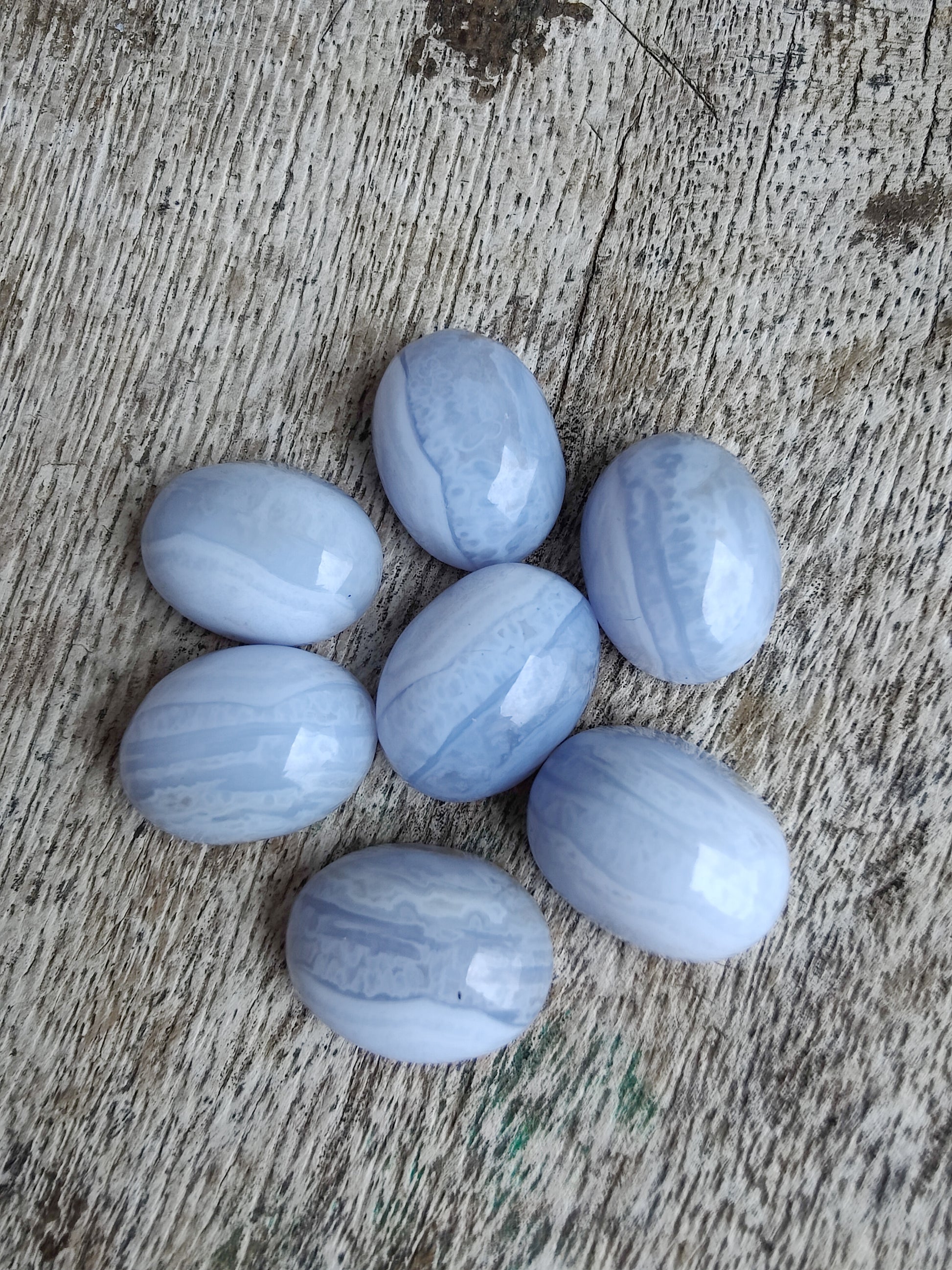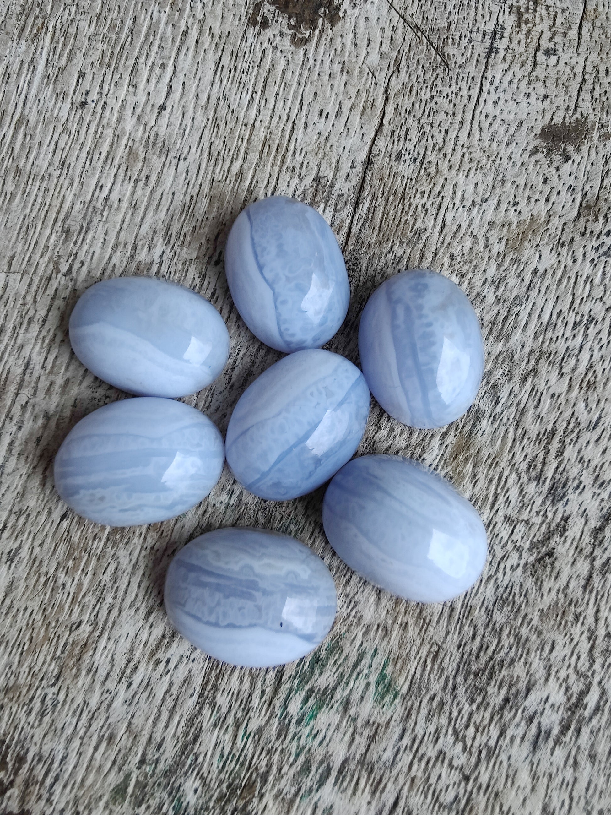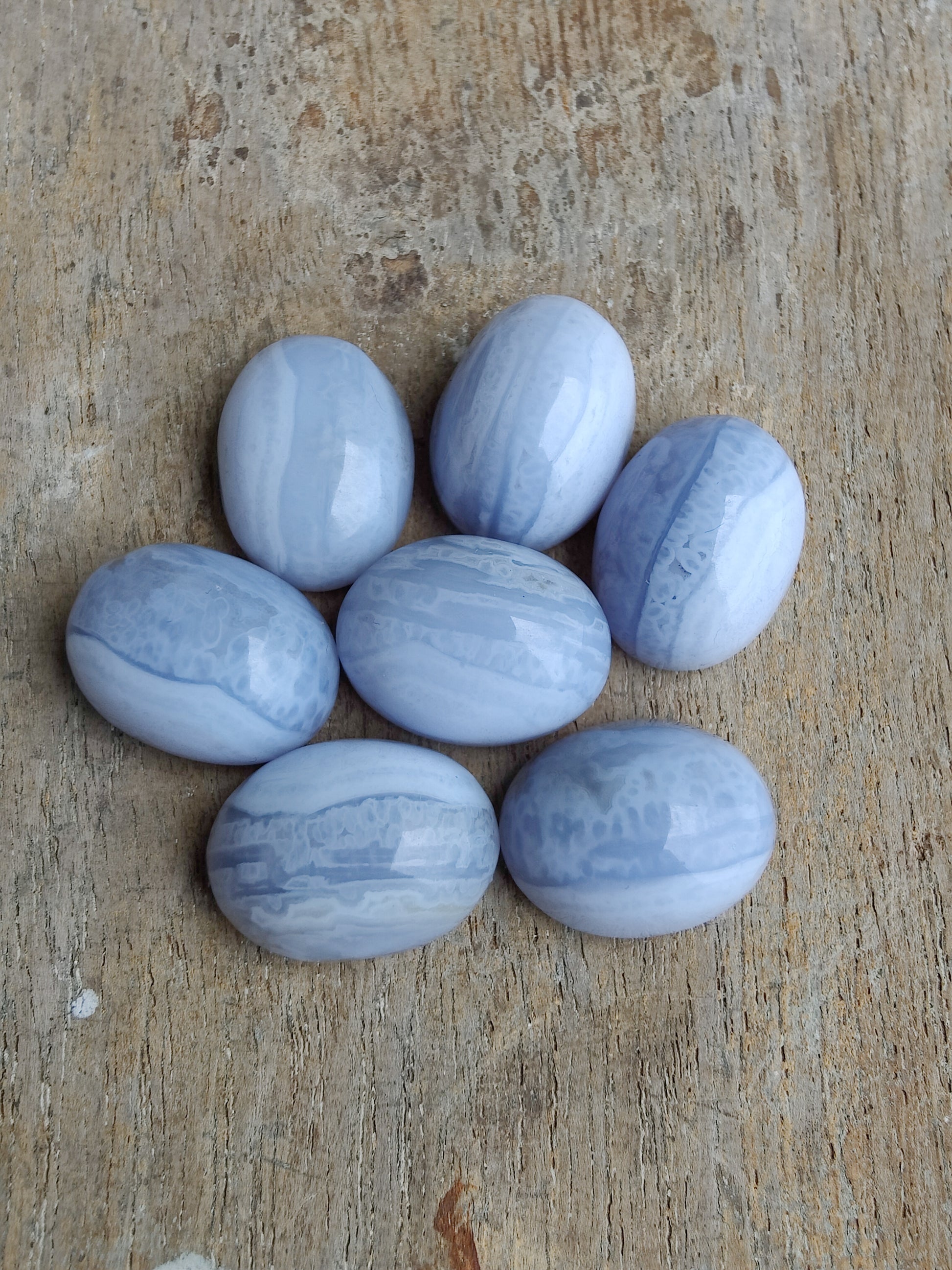 - Blue lace agate is an extremely soothing stone, and according to Askinosie, it's a great one to reach for when you're feeling stressed out or overwhelmed. "It?helps to self-soothe, improve mood, and return to a state of calm