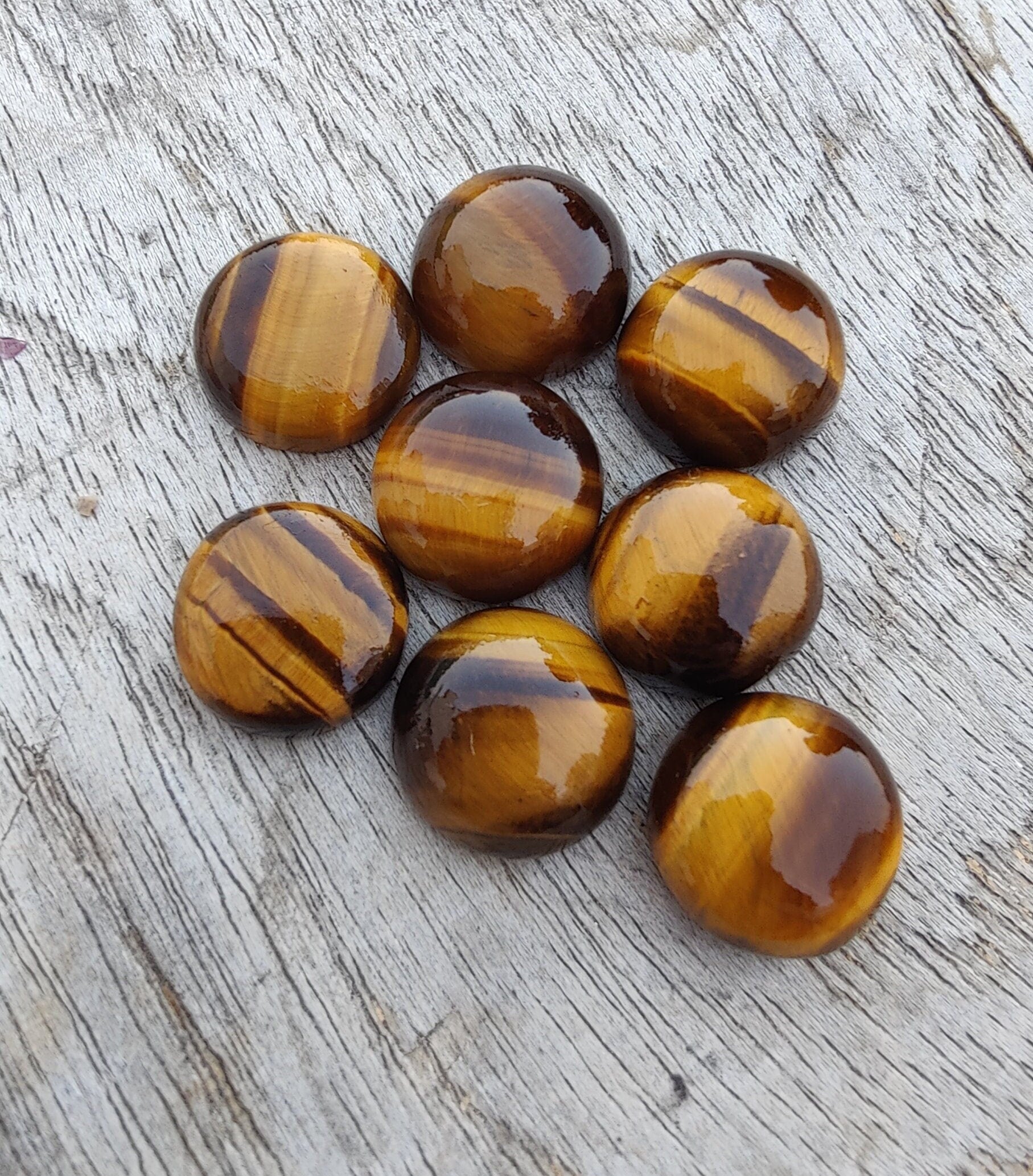 Natural Tiger Eye Round Shape Cabochon Flat Back Calibrated Wholesale AAA+ Quality Gemstones, All Sizes Available